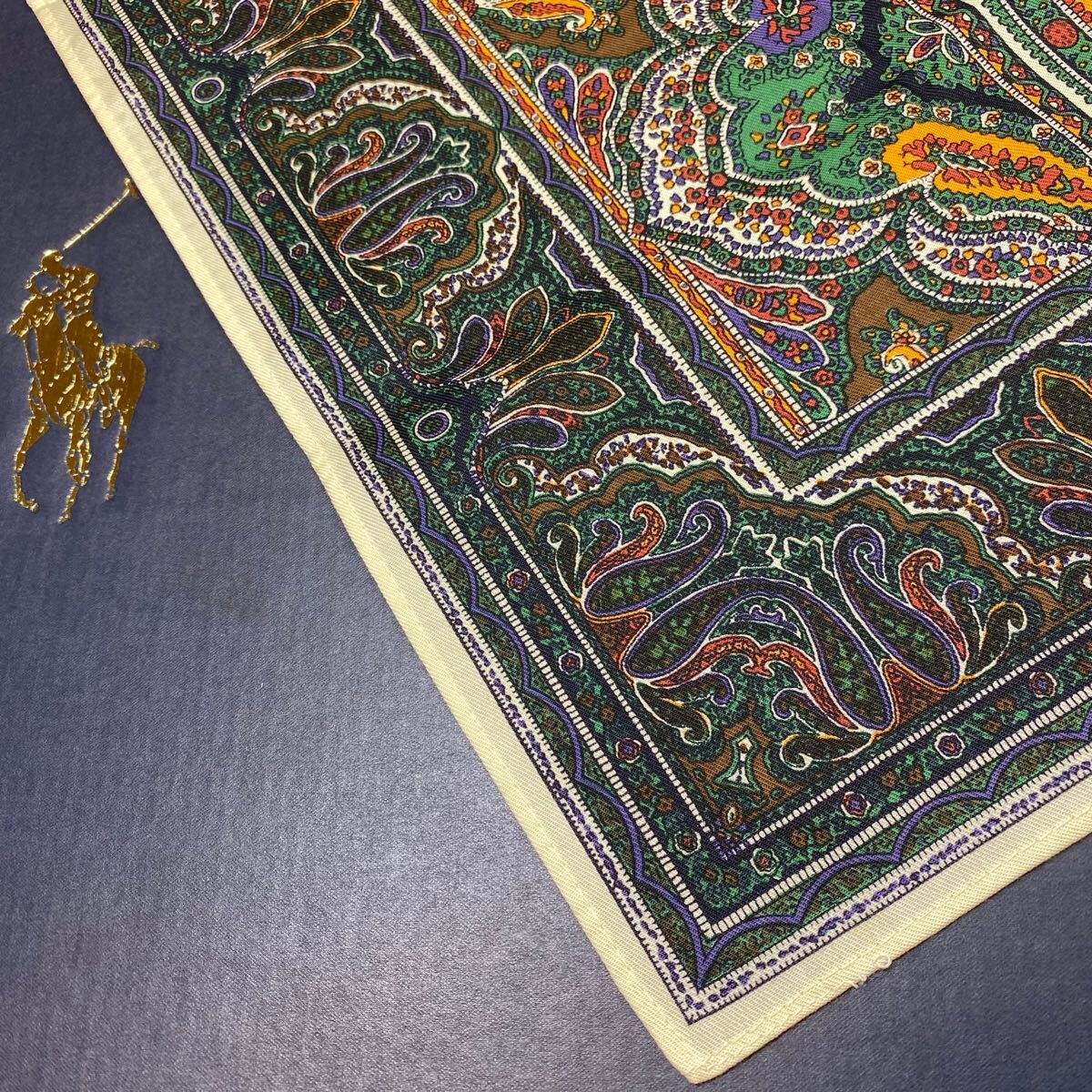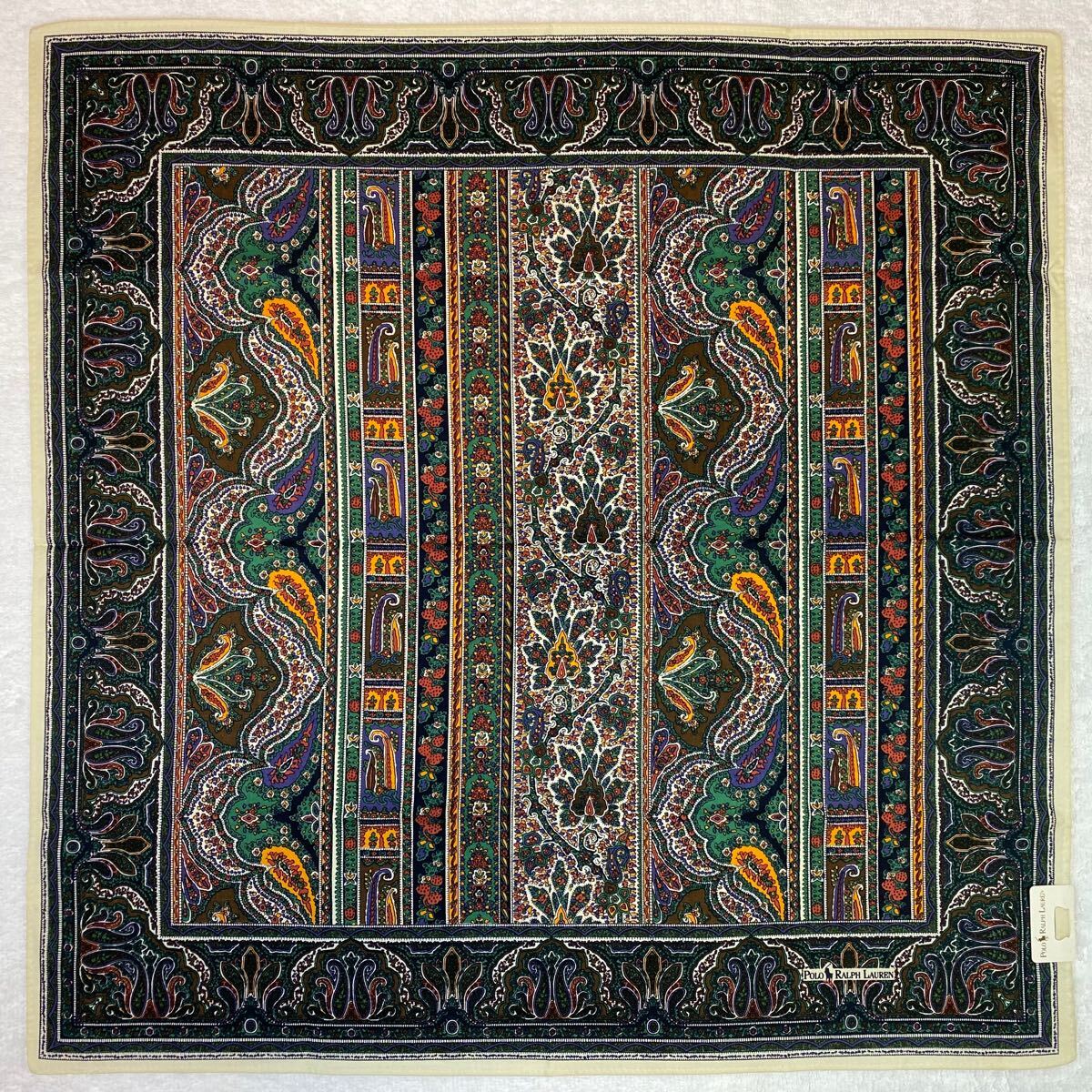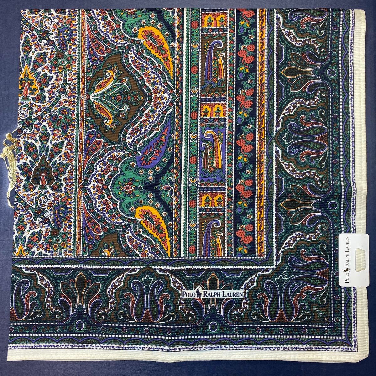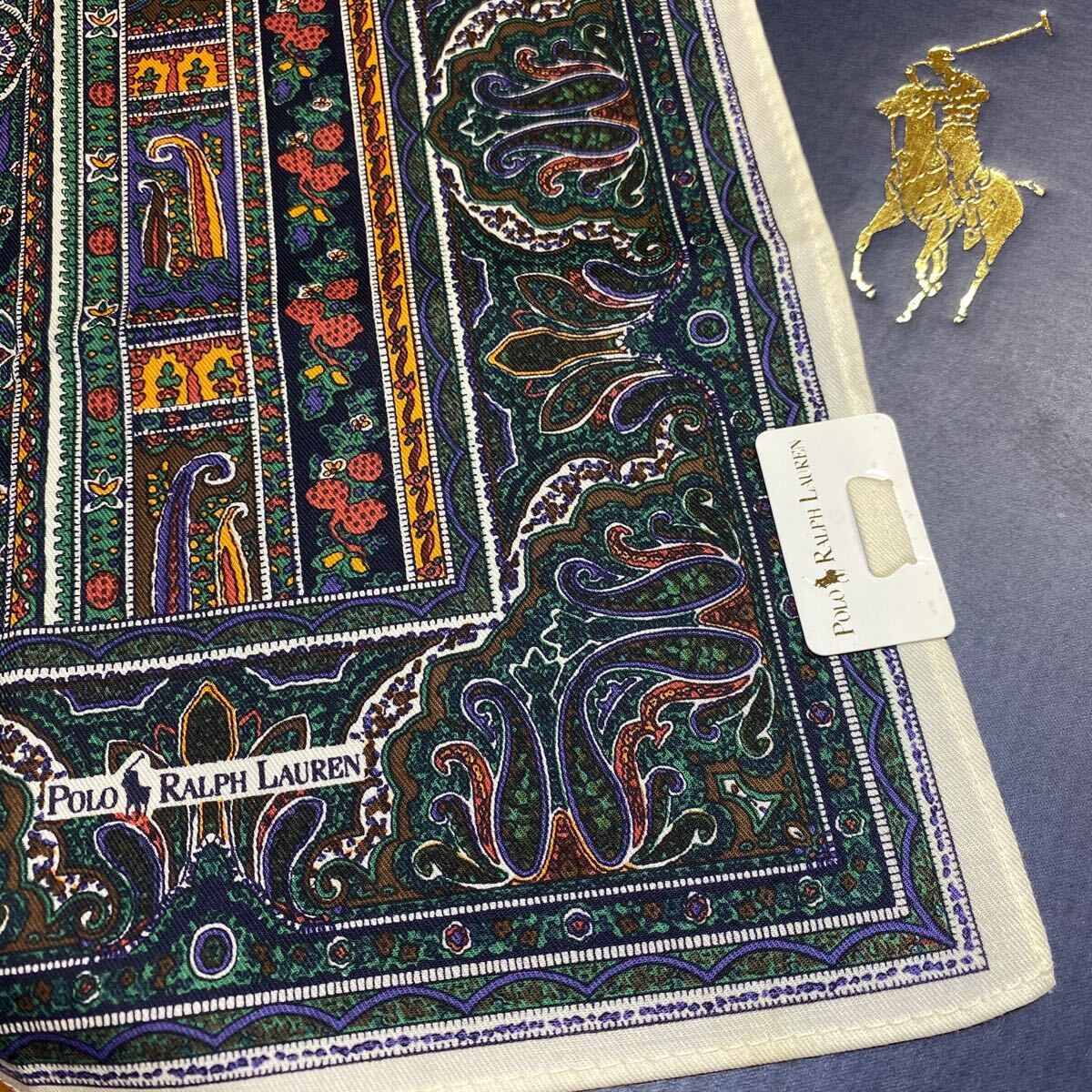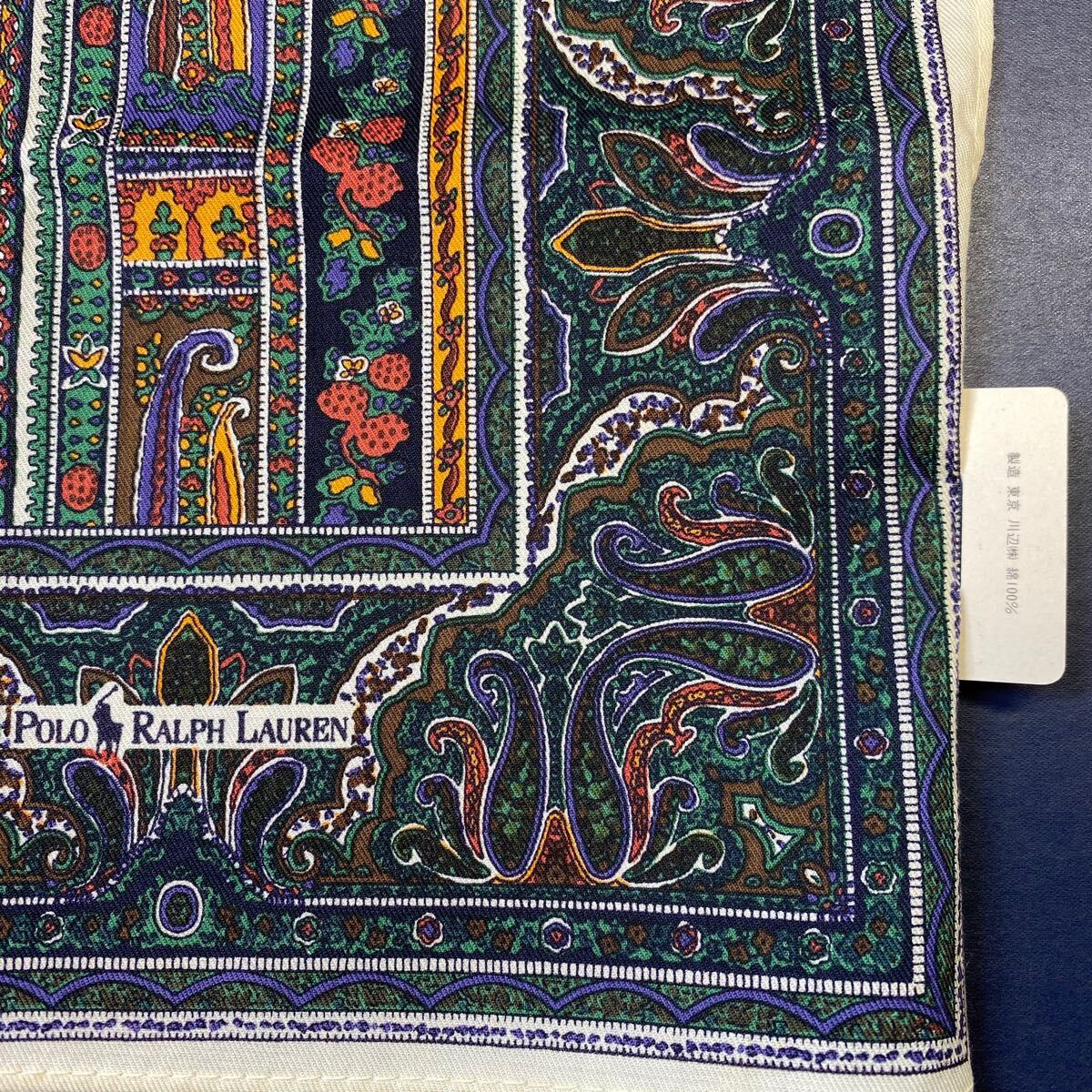 レア90s Vintage新品Tag付川辺日本製ラルフローレンPolo Ralph Laurenエスニック ネイティブ フローラル アラベスク ハンカチ バンダナ約52