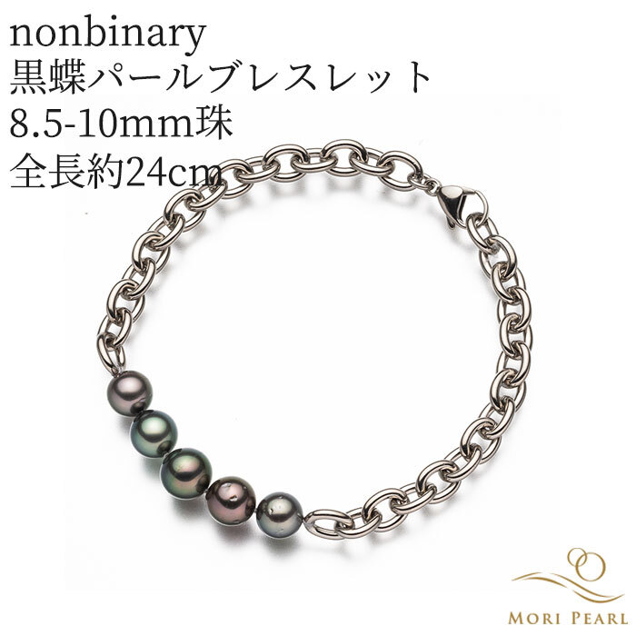 【nonbinary】黒蝶パールブレスレット 8.5-10.0mm 全長約24cm 真珠 パール 冠婚葬祭 ギフト