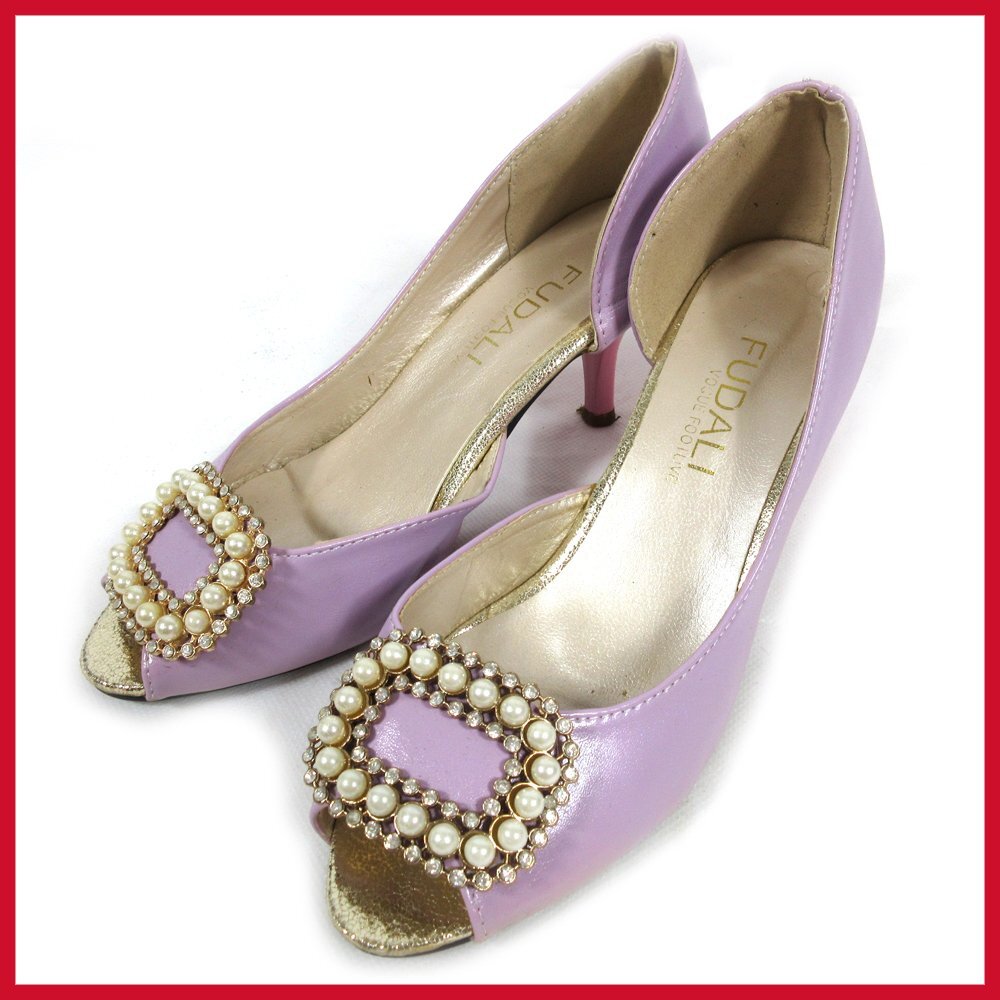 ●♪FUDALI▲ビジューモチーフサンダル▲ラベンダー▲サイズ38(24.0)▲ヒール6cm