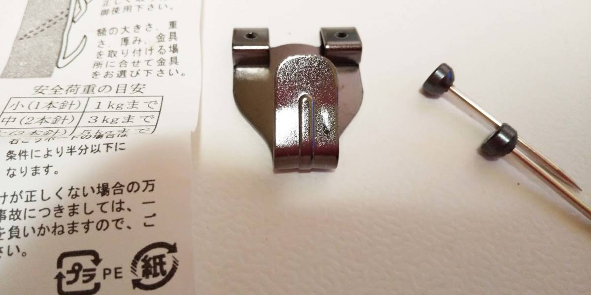 フックを壁に固定するためのピンが2本付いています。