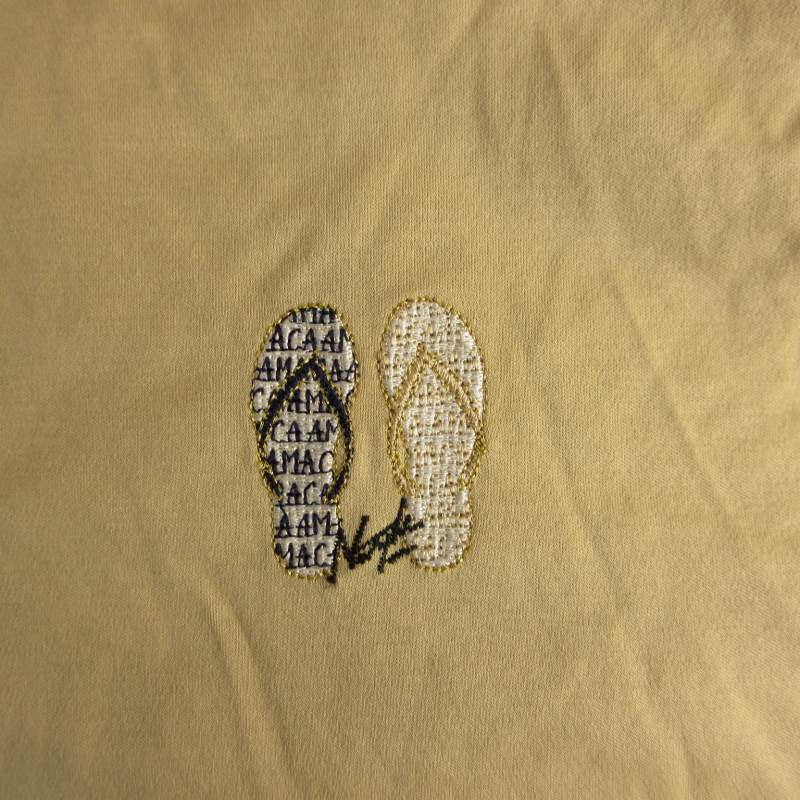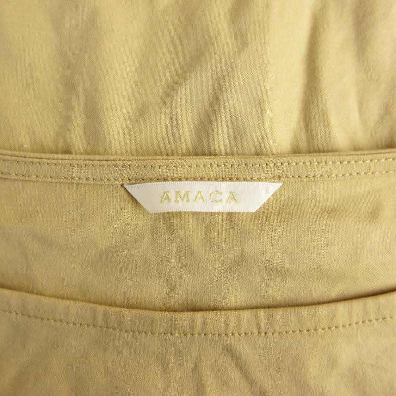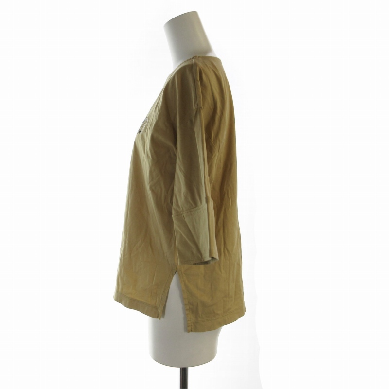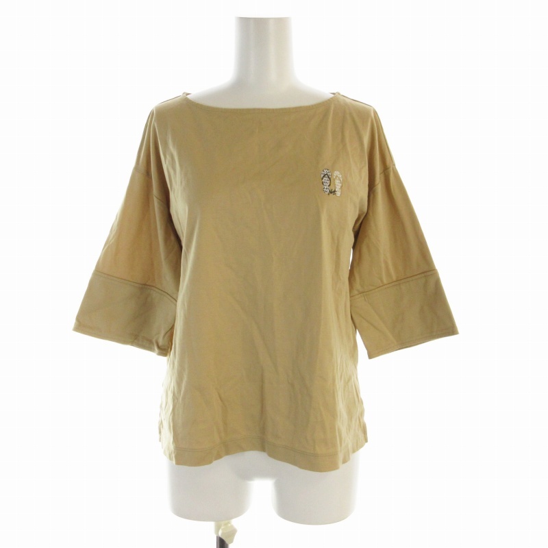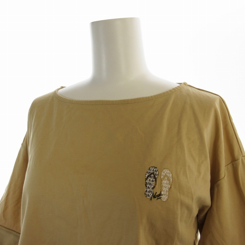 アマカ AMACA カットソー サンダルモチーフ 刺繍 ボートネック 五分袖 38 M 茶 ブラウン /RO レディース