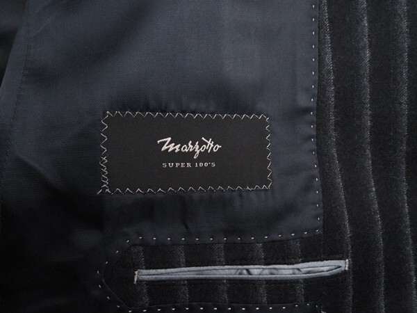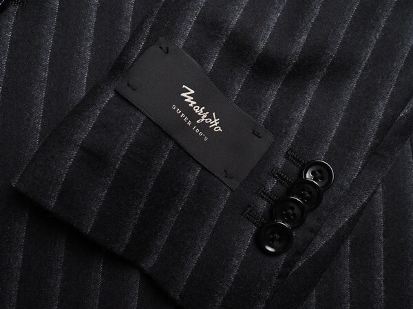 本切羽、AMFステッチ、お台場仕立てなど、百貨店向けならではの上級仕立てで仕上げられております。ファブリックは南イタリア随一の伝統と最大級の規模を誇るマルゾット社のSuper100'Sウール100%生地を使用。イタリアならではの深み、光沢のある染色技術で仕上げています。非常に柔らかく色合いが豊かで、繊細かつ、なめらかな着心地です。