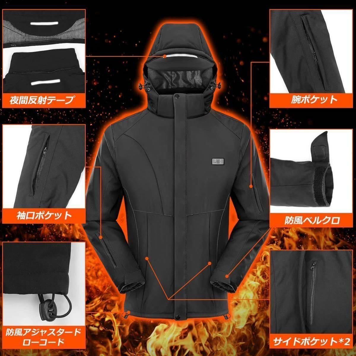 【速暖 電熱ジャケット&高機能素材無味無臭】この電熱ジャケットは繊維ヒーターを採用し、電源を入れた後、約10秒ぐらい温まり始め、1分間ほど暖かさが広がります。加熱ジャケットの表地は100%ポリアミド繊維を採用し、防風性、撥水性、耐摩耗性のほか、素材をアップグレードして無味無臭になって着心地がとても良いです。中身と裏地には中綿入り、ヒーターとの組み合わせで熱を逃さず、電量がなくなってただ普通に着ていても暖かいです。