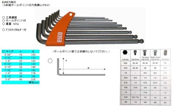 | ESCO 5/64-3/8"/9本組 [Ball-Hexagon] キーレンチ EA573EC |