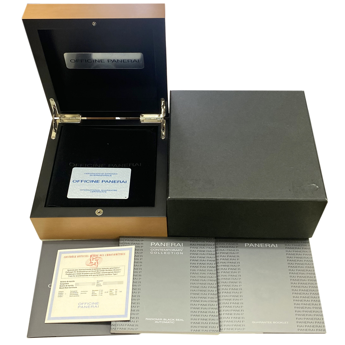パネライ純正ボックス、ギャランティーカード(2012/4/14販売、氏名部分塗りつぶし)、クロノメーター証明書、取扱説明書、冊子