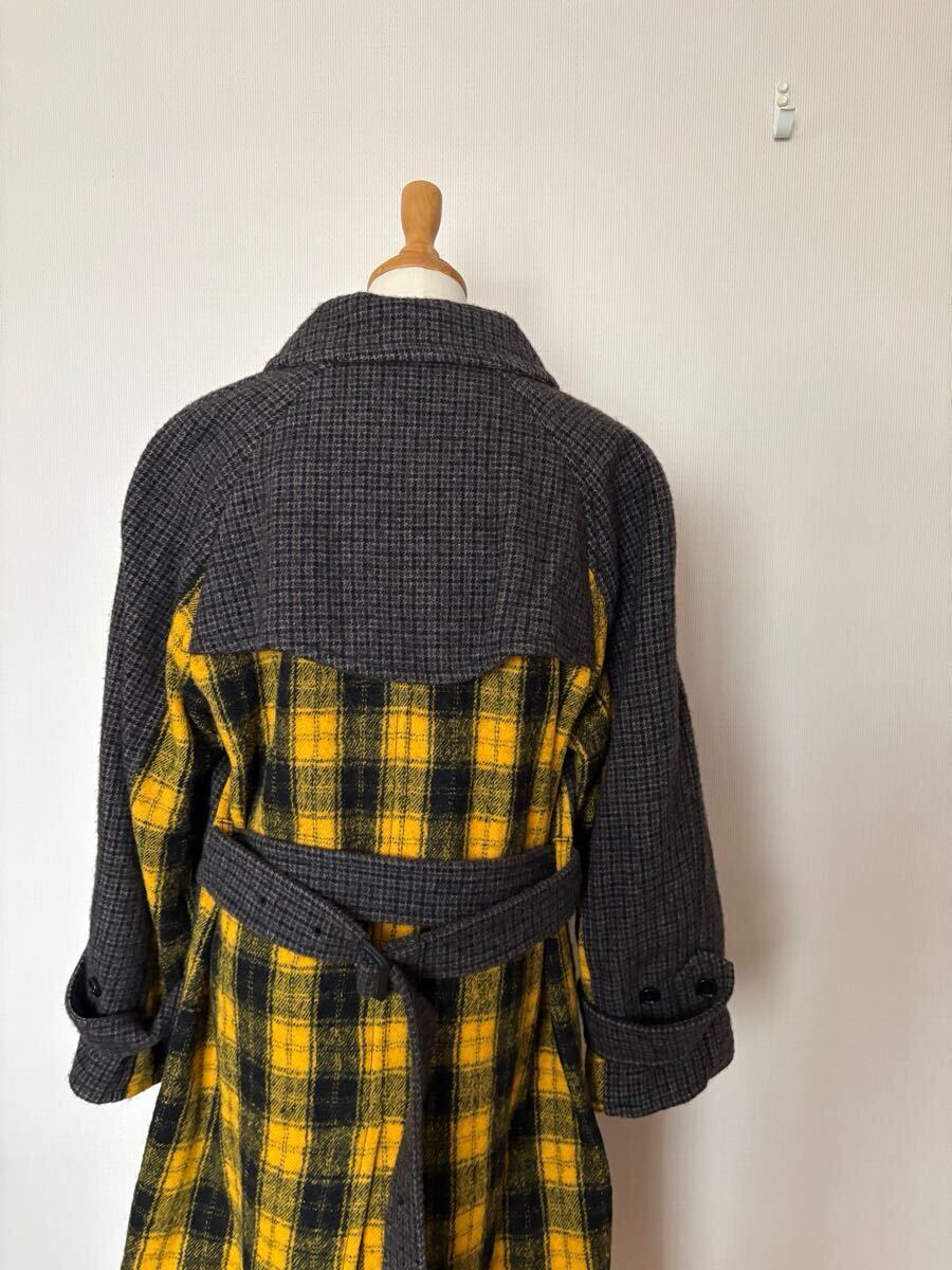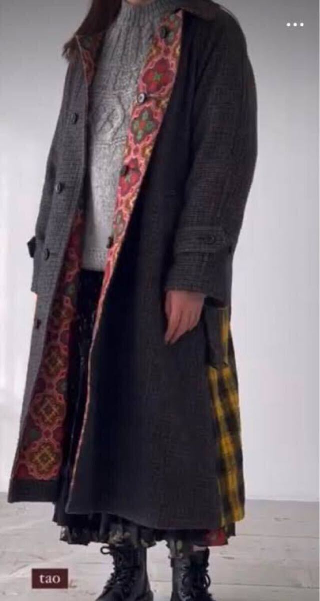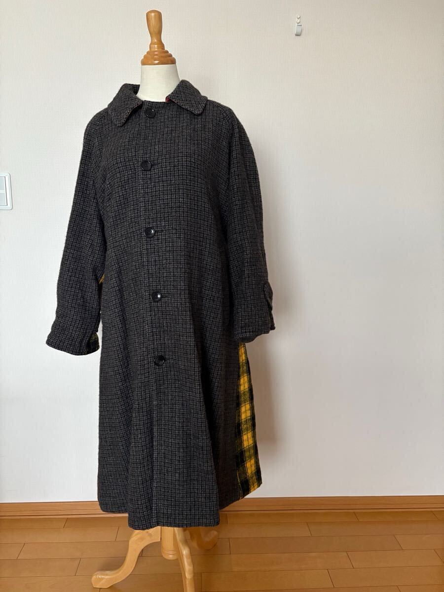 表は一見シンプルな千鳥格子柄のコートですが、後がカラータータンチェックと可愛らしいデザインのコートです。