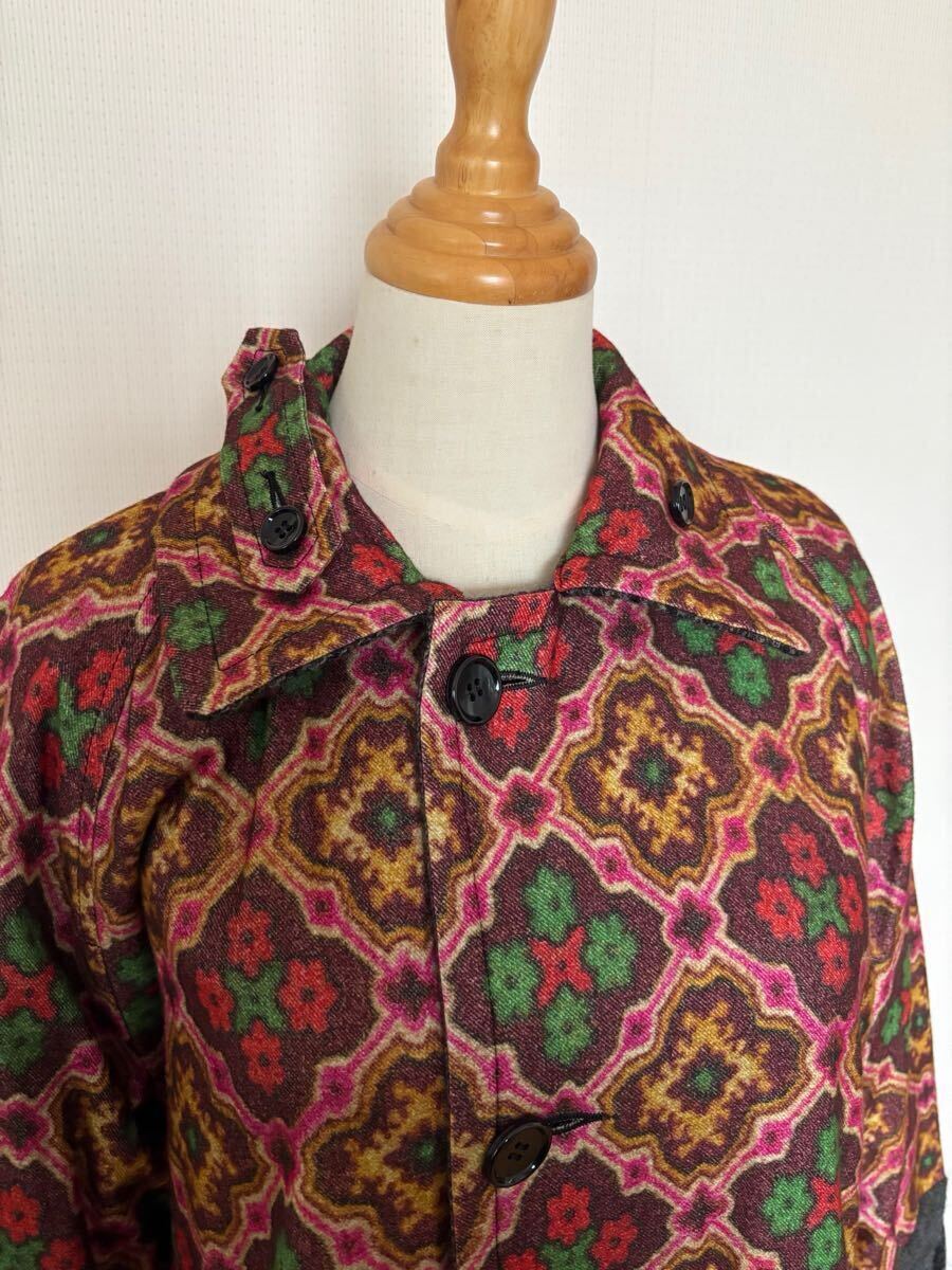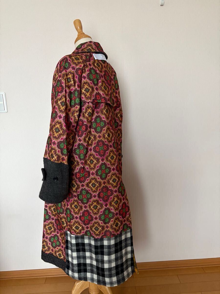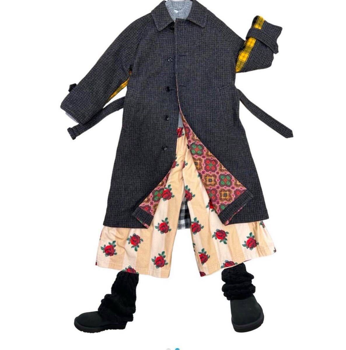 表は一見シンプルな千鳥格子柄のコートですが、後がカラータータンチェックと可愛らしいデザインのコートです。