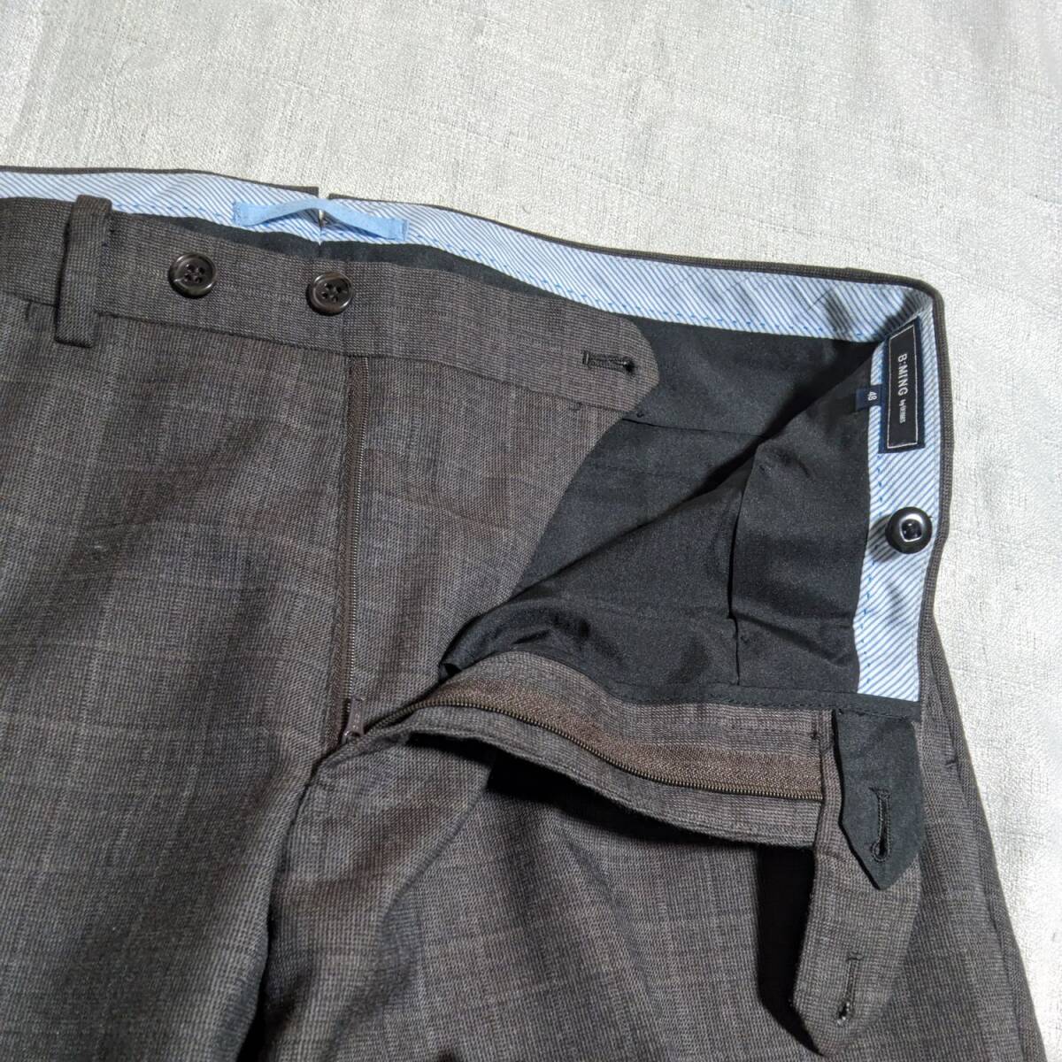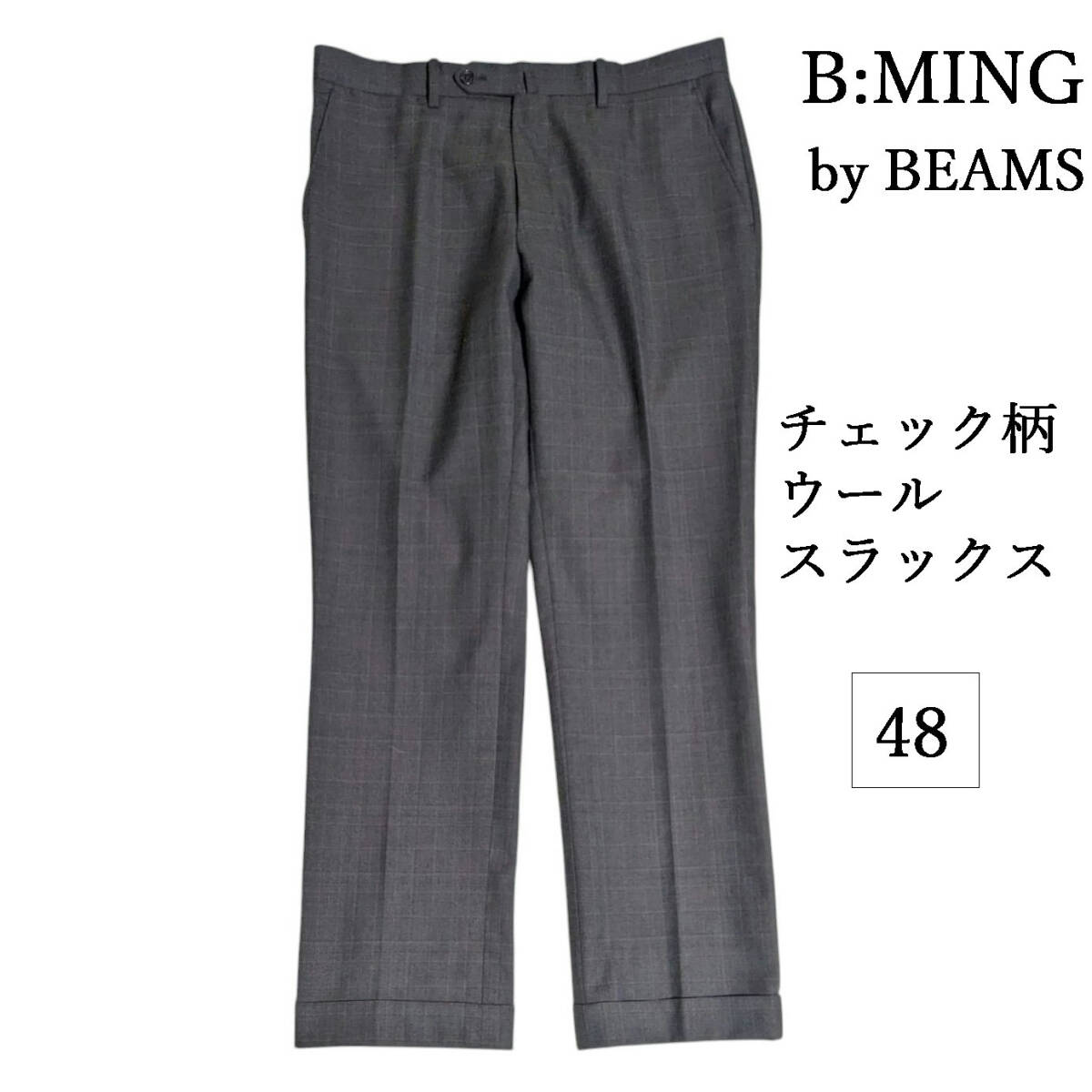 B:MING by BEAMS COURDURA チェック スラックス コーデュラ ウール ダブル グレー ブラウン テーパード トラウザー ビームス