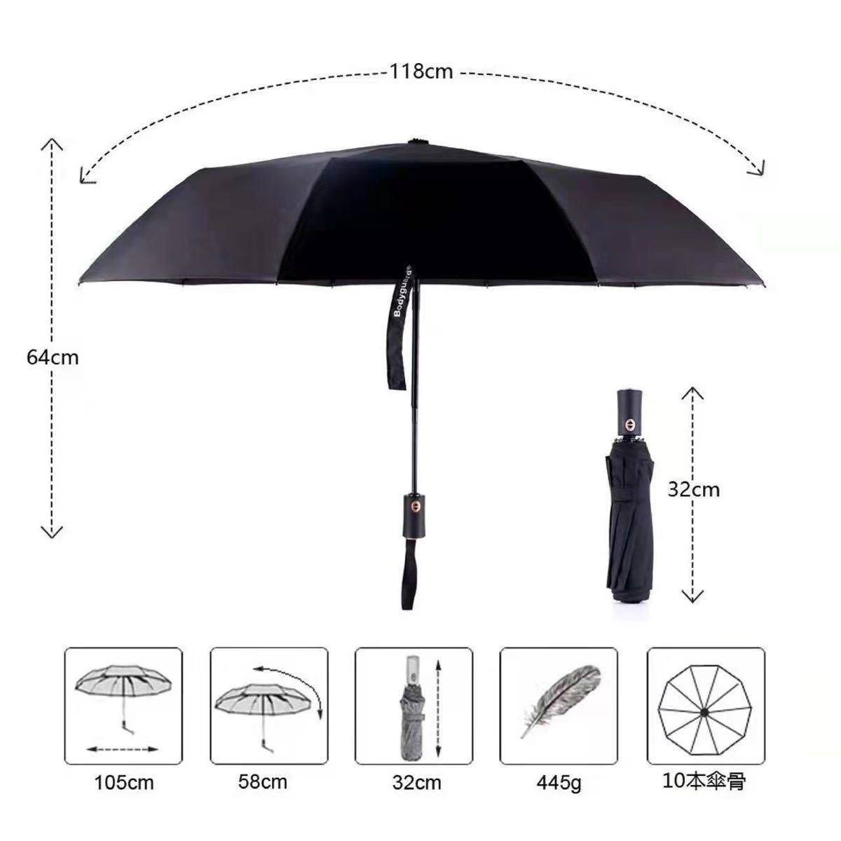 【118cm超大サイズの折畳み傘】傘の曲面長さが118cm、開く直径が105cmです。2人で荷物を持って傘に入っても余裕があるほどの大きさです。また斜め方向から打ち付ける雨にも濡れにくい仕様となります。土砂降り・強風の日にもしっかりと雨を防いでくれます。