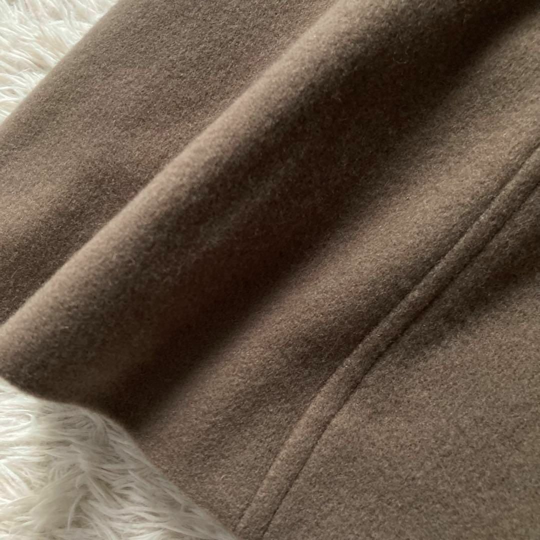 タートルネック等の冬のトップスやワンピースにも合わせやすく、マフラー合わせもしやすい一枚です。
