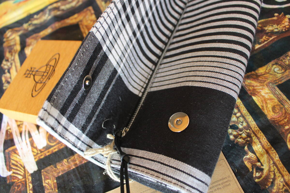 新品 ヴィヴィアン 2021ss U GET OUT WHAT U PUT IN! クラッチバッグ 商品説明 Vivienne Westwoodのアフリカバッグは、アフリカの一部地域においてビジネスを通じた経済的自立を支援する国連の活動Ethical Fashion InitiativeとVivienne Westwoodの協業により生まれたシリーズです。このシリーズは現地の廃材をリサイクルし、各地域のコミュニティに属する職人の手により、一点ずつ愛を込めて生産されています。 東アフリカの伝統的な織布、キコイ布を使用したクラッチバッグ。アクティビストでもあるヴィヴィアンのスローガン、「STOP CLIMATE CHANGE」のアローのアートワークを、職人の手作業による繊細なビーズ刺繍で施しました。 【アフリカバッグ】 詳細 サイズ:縦10.5 横33 マチ4 持ち手18 ショルダ 定価¥69,300(税込)