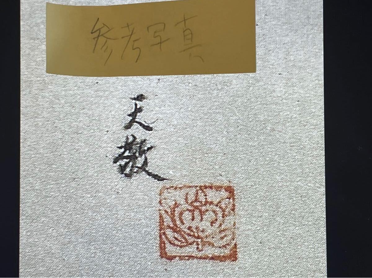 ・この出品の掛け軸の落款(サイン)&印譜(ハンコ)&作風は、別添の写真の図録(1975年日本橋三越での展示の図録&1993年大英博物館での展示の図録の2冊)に収録のものと高い相似性を有しております(参考例の写真2枚ご参照ください)。