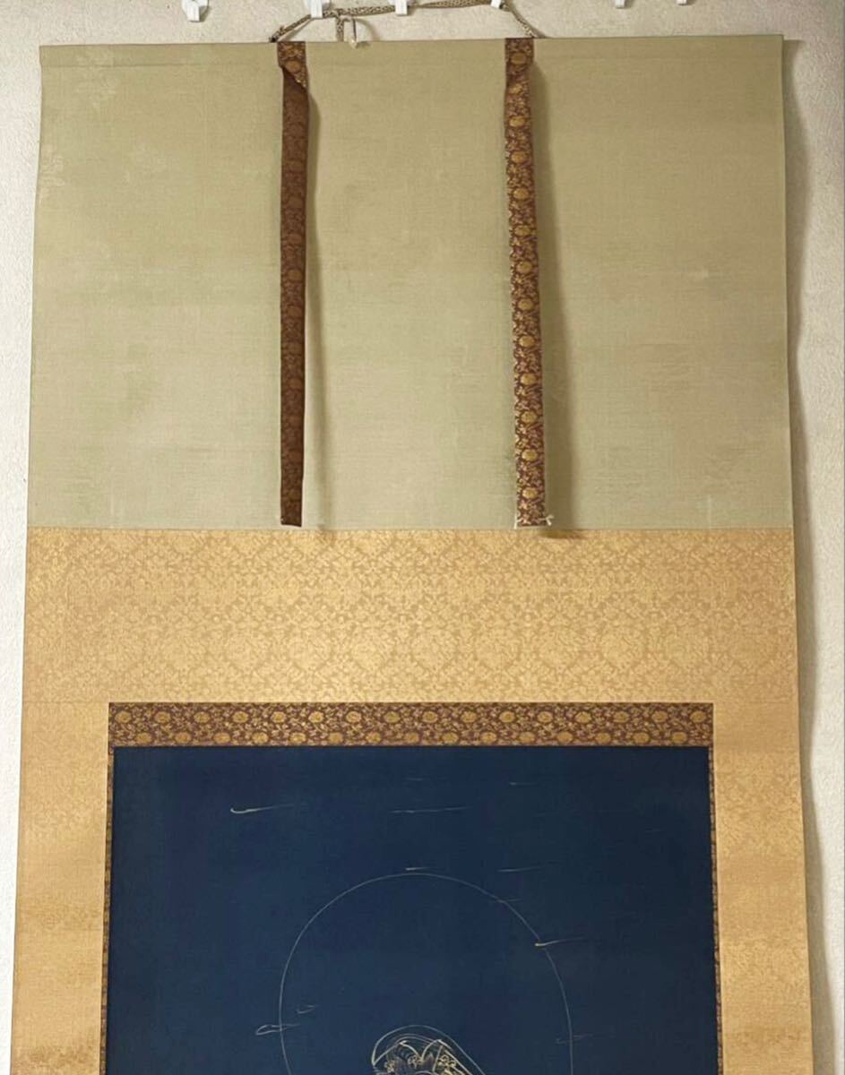 ・掛け軸の軸先は、昔のニカワ(天然接着剤)でくっつけているため、経年変化により外れやすくなっており、輸送の際に取れることもありますが、木工ボンドで簡単に修復できますのでご安心ください。