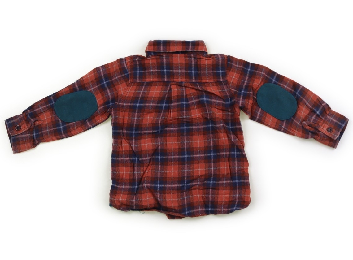 ネルシャツ生地。色褪せと毛羽立ちに伴う白っぽさが見られます。シワ感、型崩れがあります。使用感はありますが、まだまだお使いいただけます。外遊び用としていかがでしょうか?