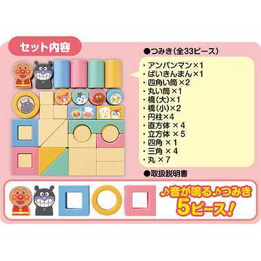 ●アンパンマンとばいきんまんの形をした可愛いつみきが入っています。(音入りピース)