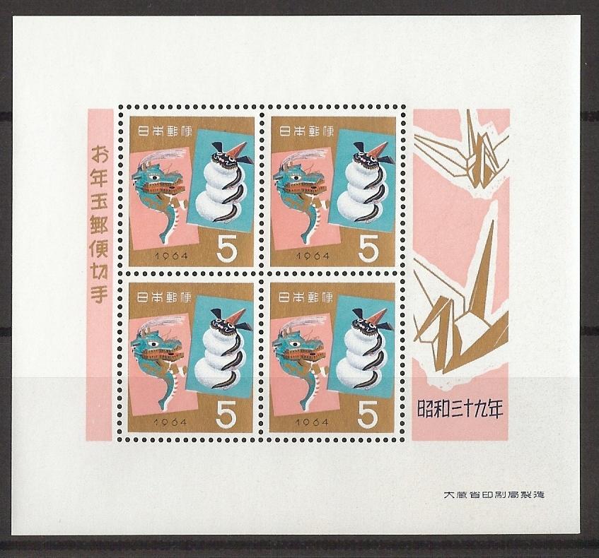 S39 年賀切手 お年玉小型シート 昭和39年用 竜神と辰