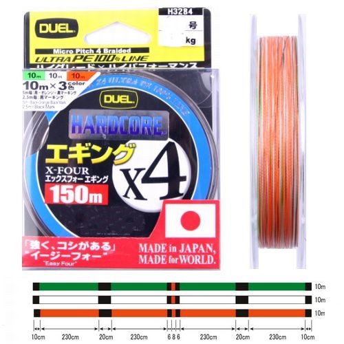 日本製PE ハードコアX4 エギング150m0.8号14LB 3色分け