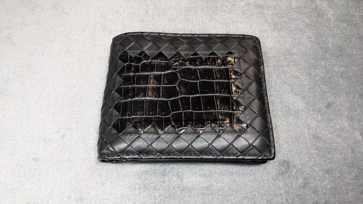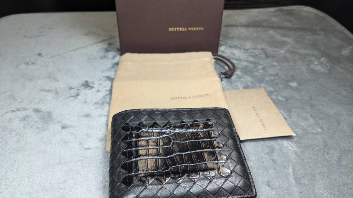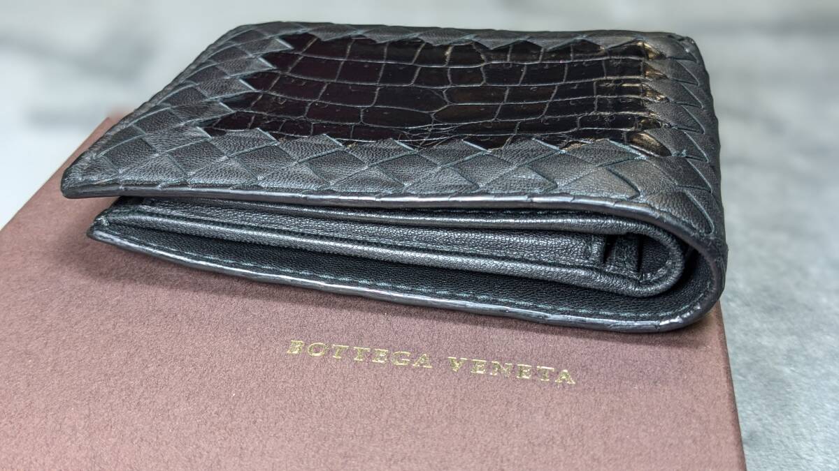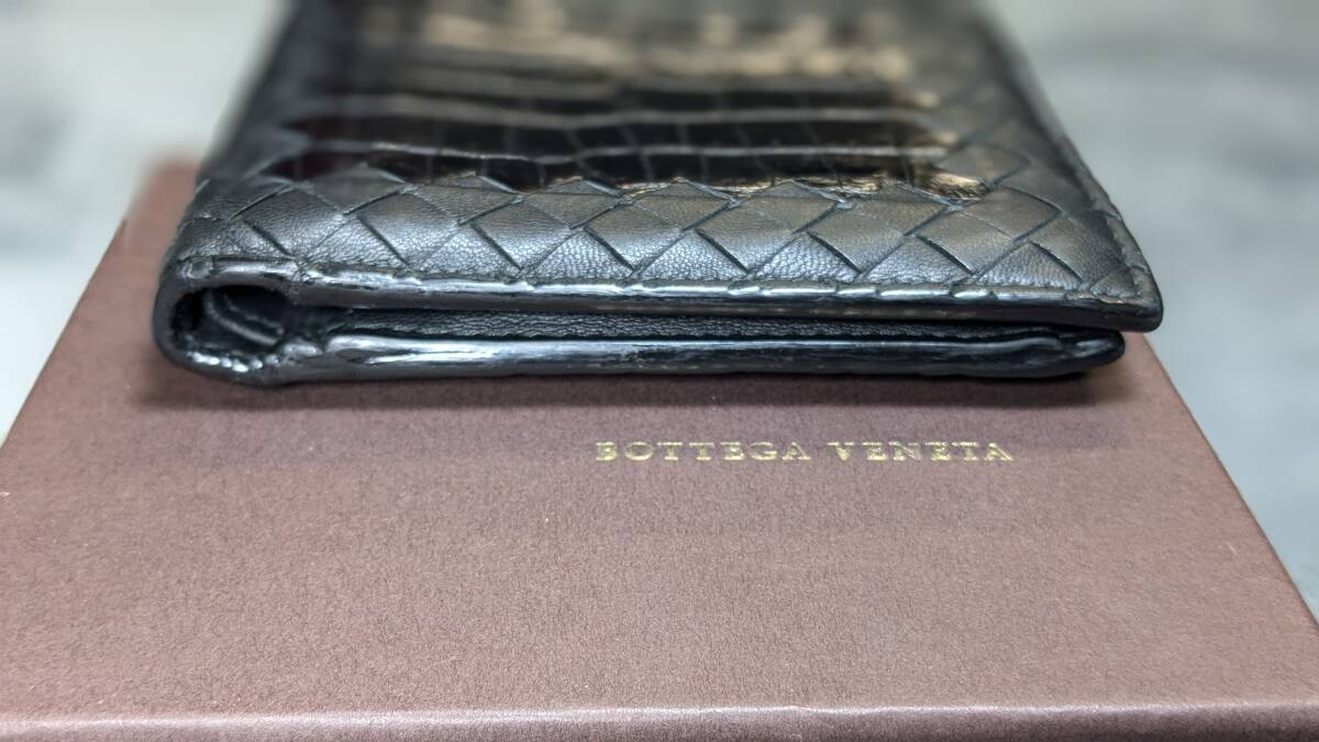 ●美品/超レア財布/BOTTEGA VENETA☆ボッテガヴェネタ短財布/クロコ+イントレチャート〔ブラック〕のご案内です!