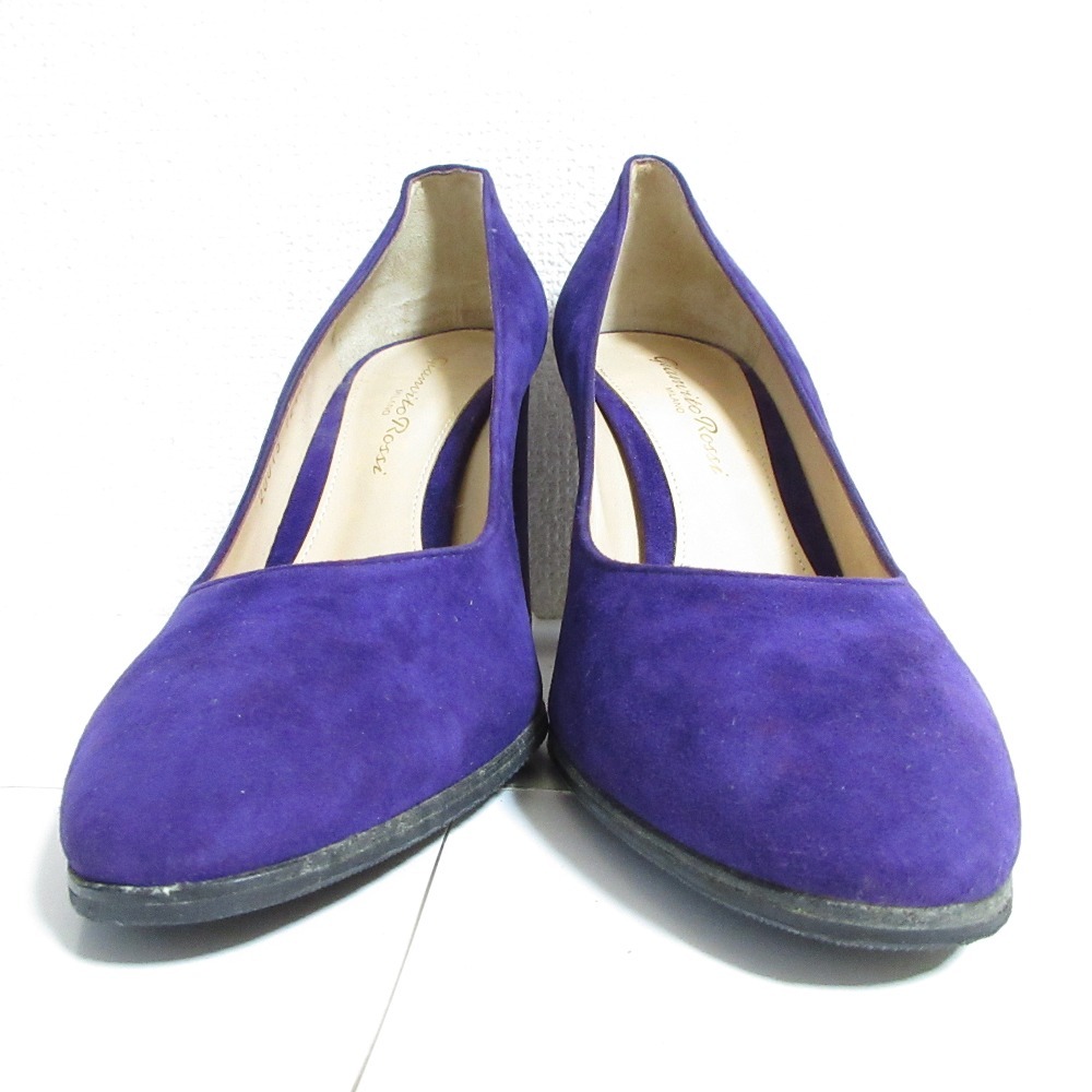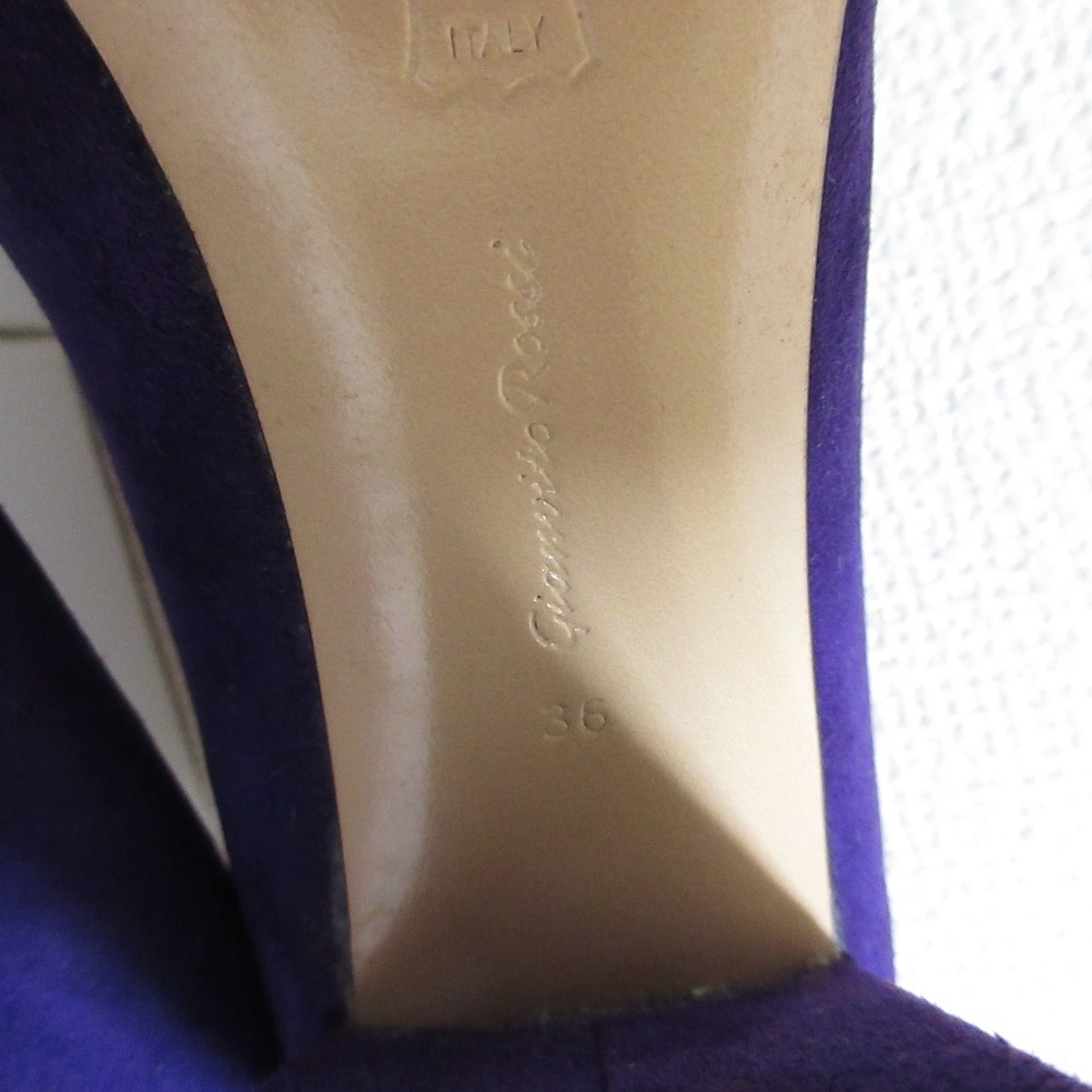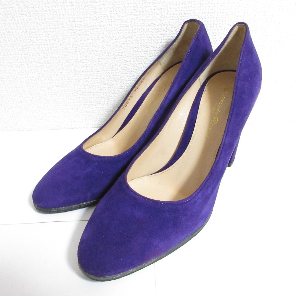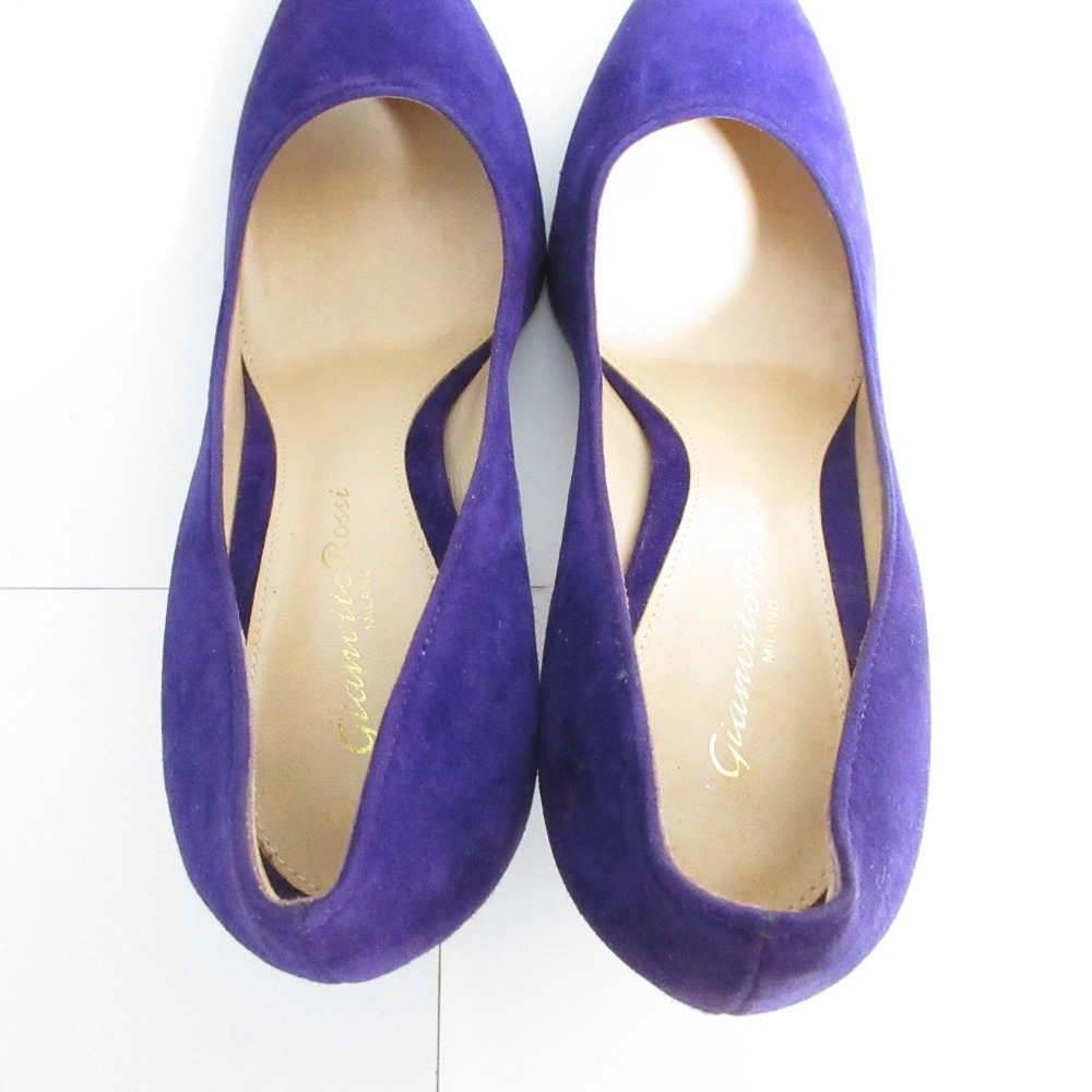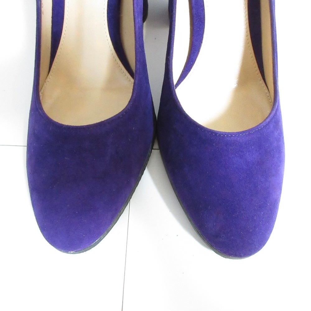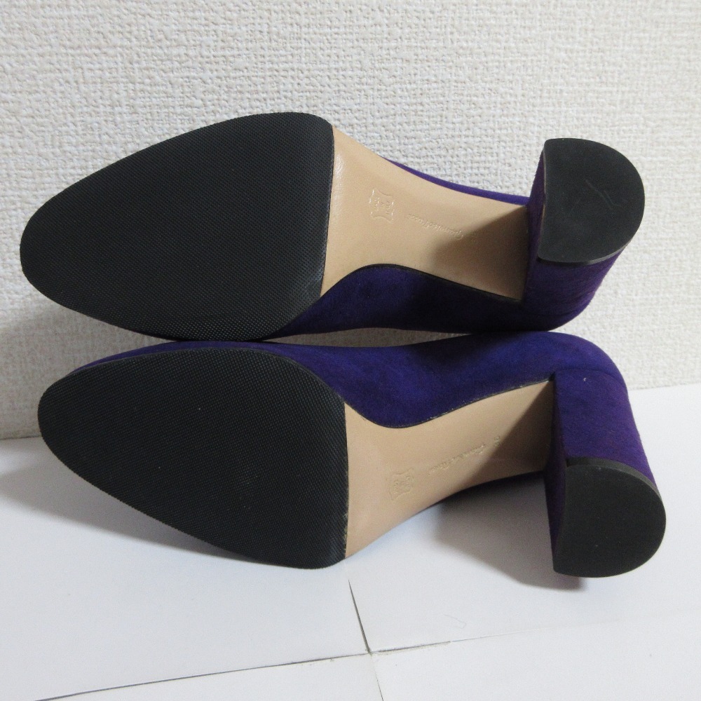 商品名:美品 Gianvito Rossi ジャンヴィトロッシ スエード アーモンドトゥ チャンキーヒール パンプス 36 23.0cm相当 パープル