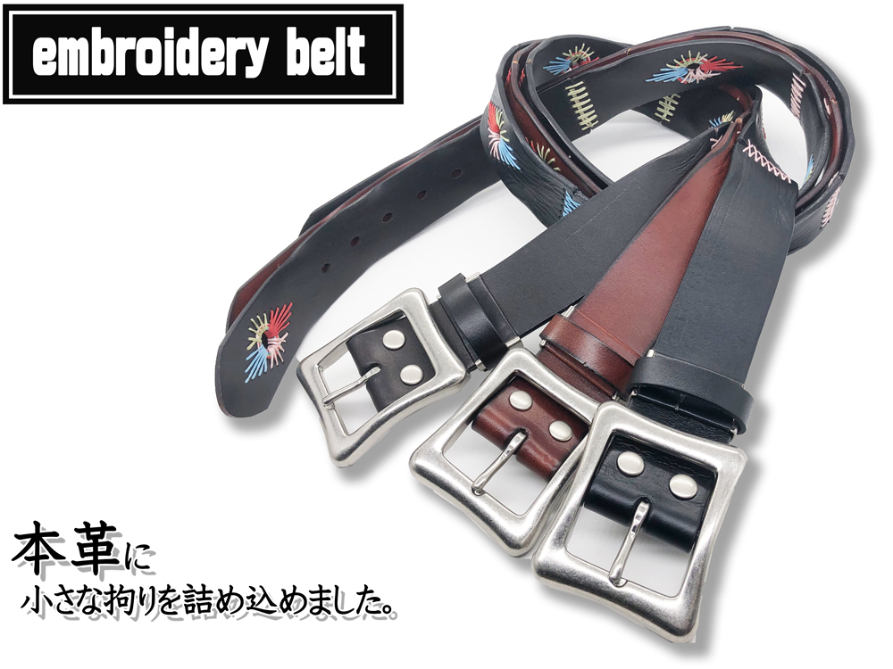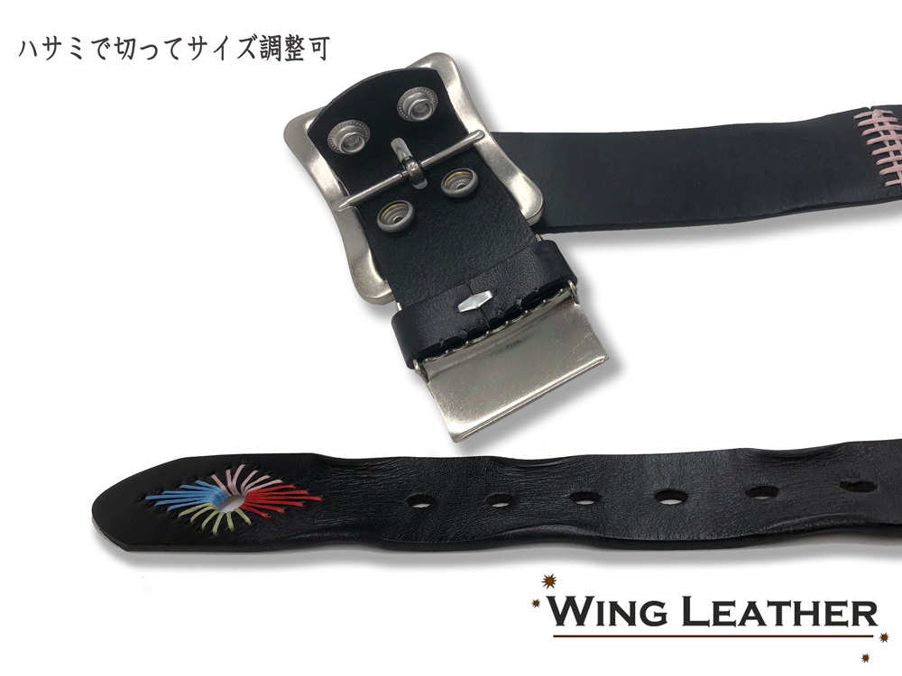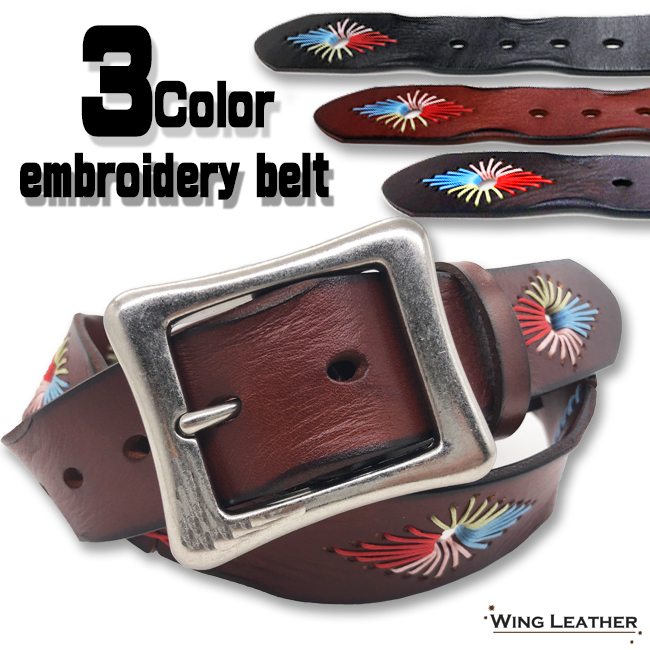 新品 イタリアンレザー ベルト メンズ 本革 カジュアル 牛革 レザー 刺繍 手縫い ステッチ カラフル ブラック 黒色 シンプル GTC026 BLACK