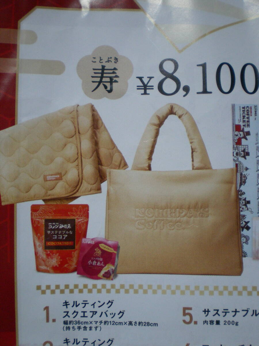 コメダの福袋2025より、コーヒーチケットなど無しの、バッグ2・ポーチ1・ブランケット1です。
