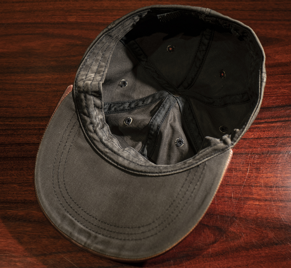 クラウン部分のコットンツイル部分は全体的に使用感がありますが、気になるレベルのシミや汚れはなく、