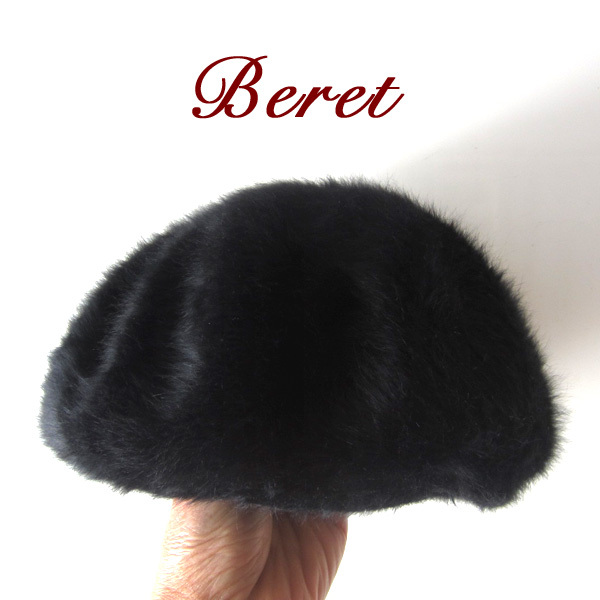 美品 ファータッチ ウール混 ベレー帽 ブラック