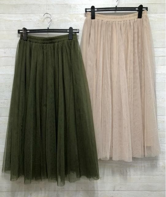 新品☆Lカーキ&アイボリー系♪チュールスカート2枚〇B850