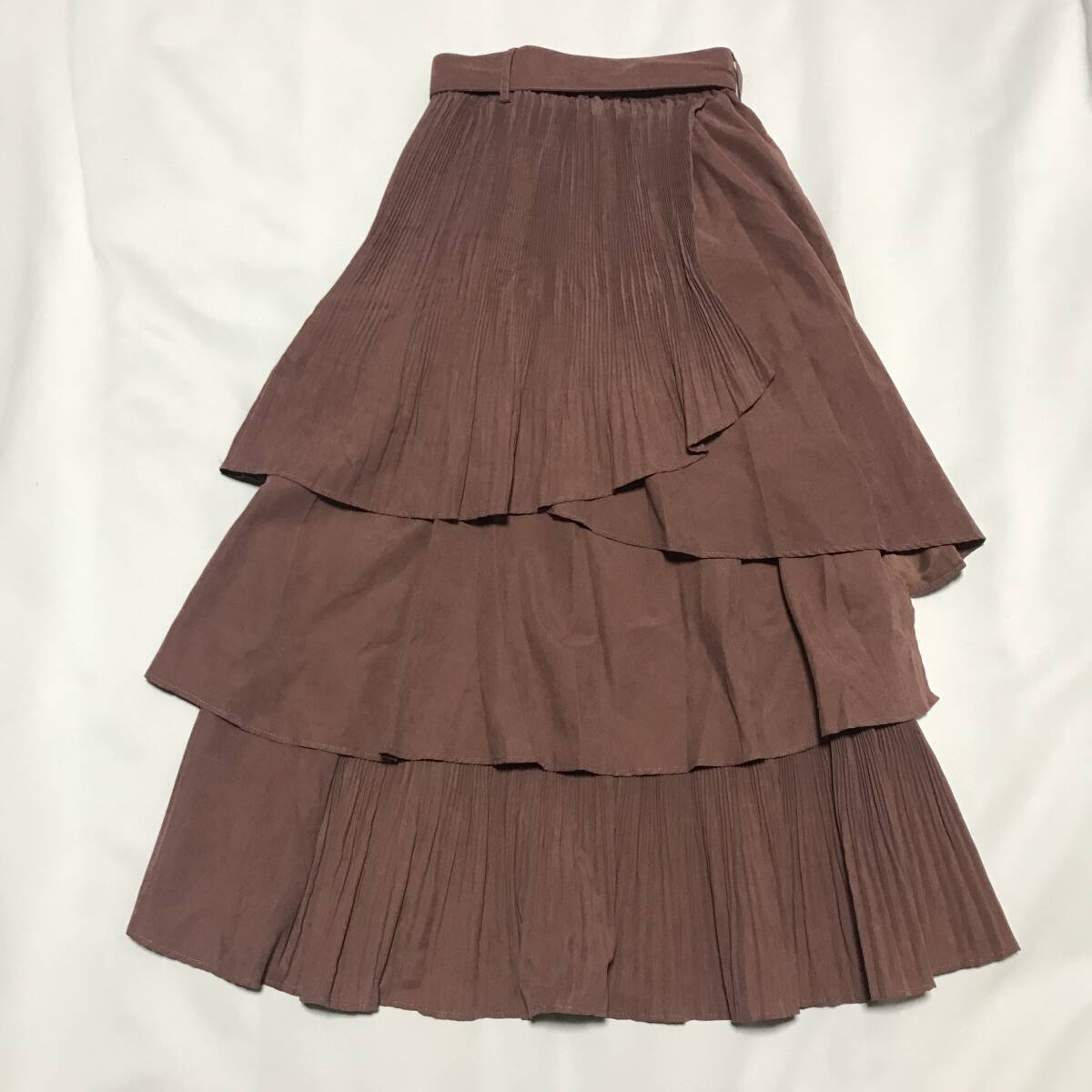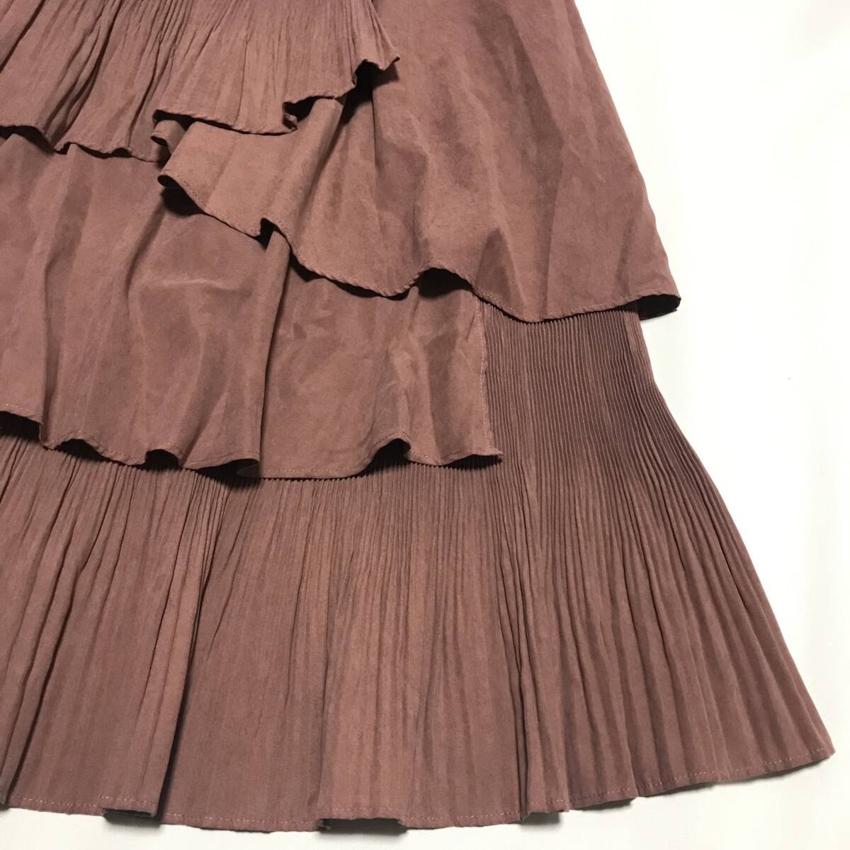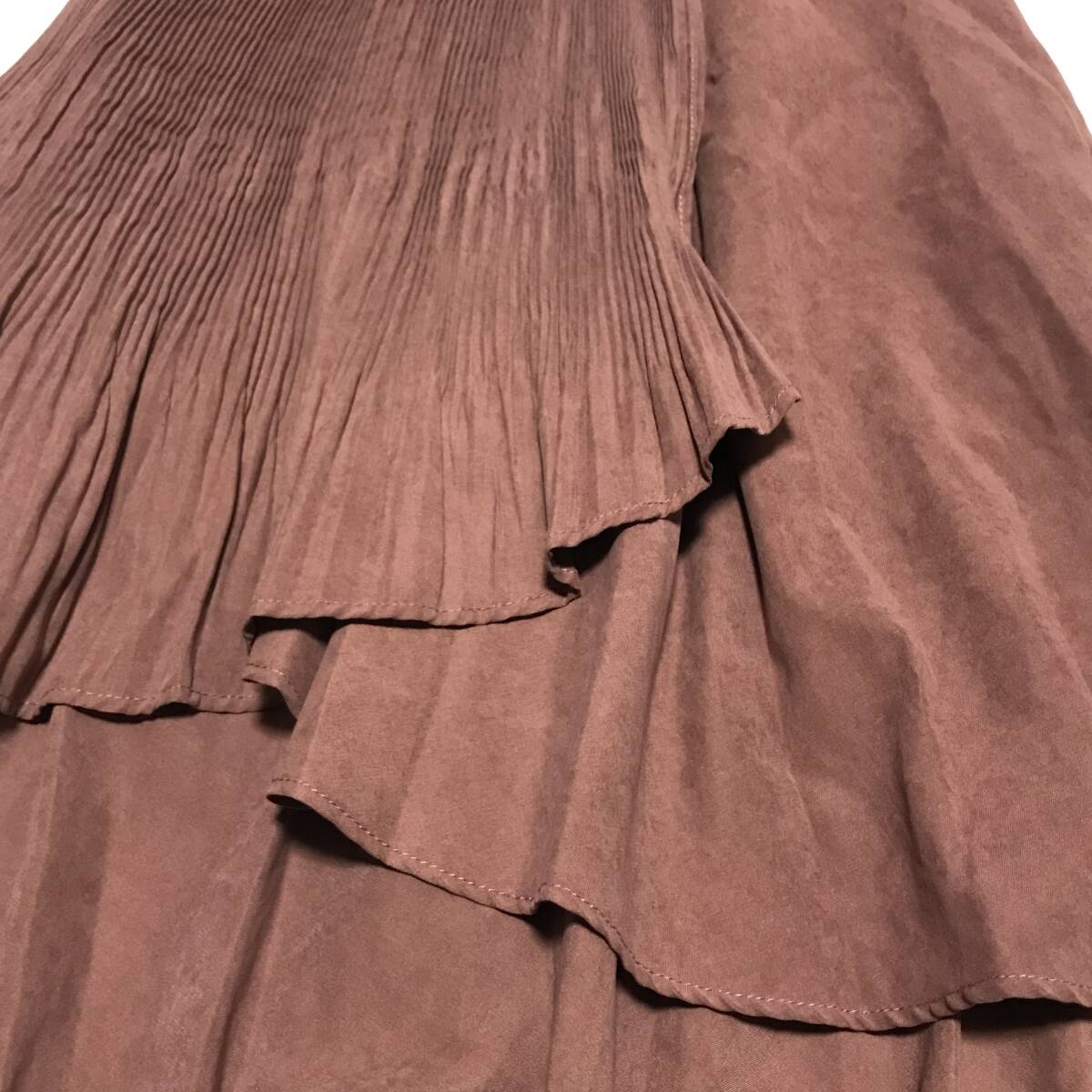 ちょうど良い張り感と柔らかさを兼ねそろえた生地を、ボリュームたっぷりに重ねたティアードスカートランダムに重なったフリルと部分的に入ったプリーツで、アシンメトリーに仕上げました。歩いた時に素肌がちらりと見えるのがポイント◎