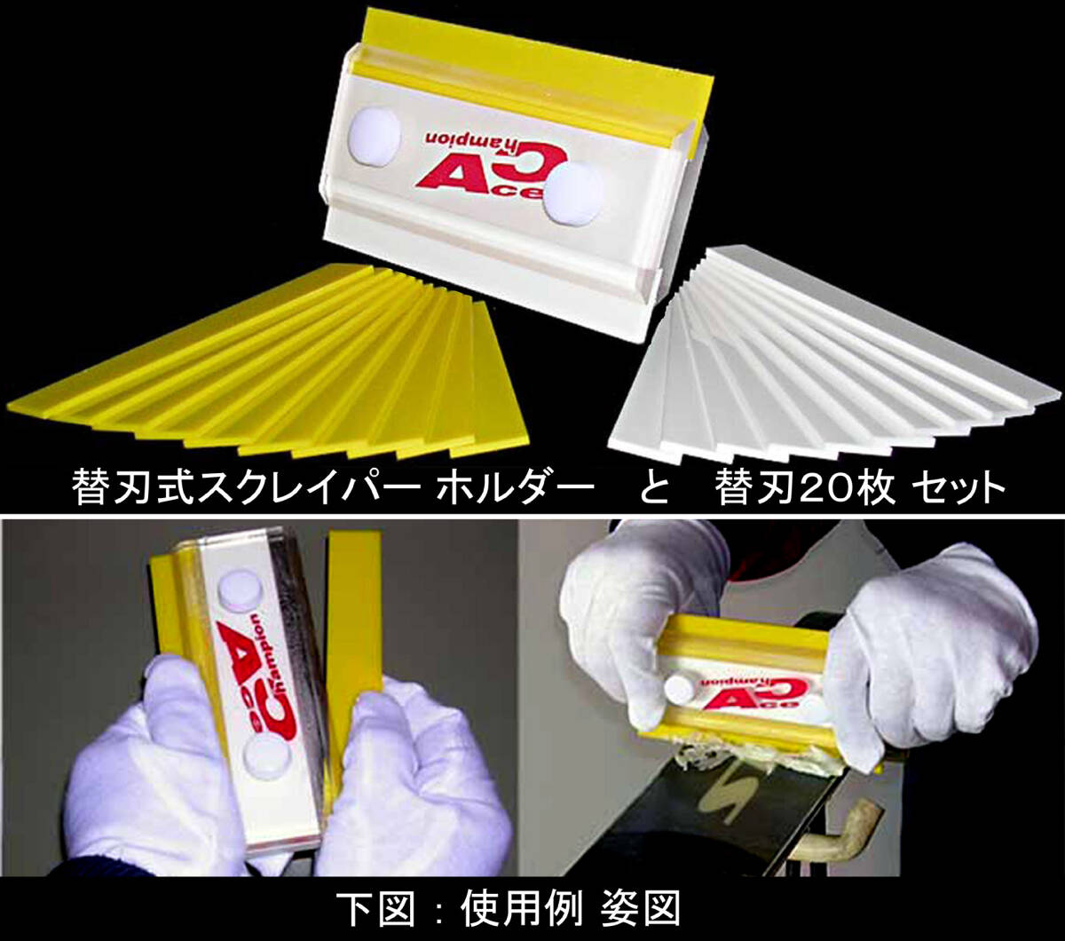 商品状態 | 新品 ●スクレーパーホルダー1個 スクレイパー替え板20枚付(白10枚、黄10枚) 替え刃取り替え使用例書き同梱 |