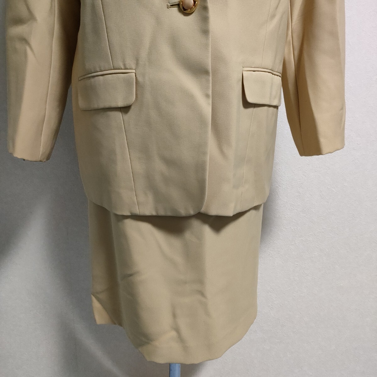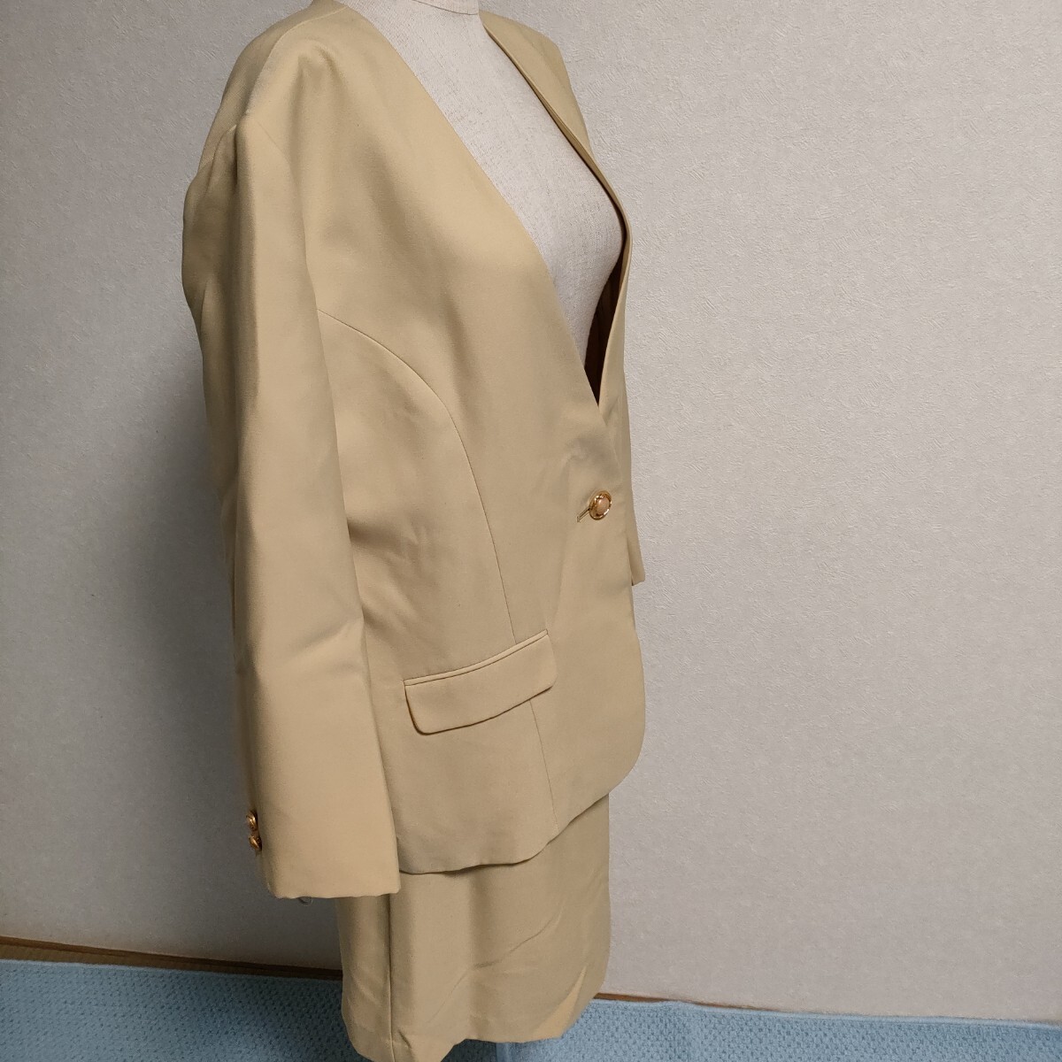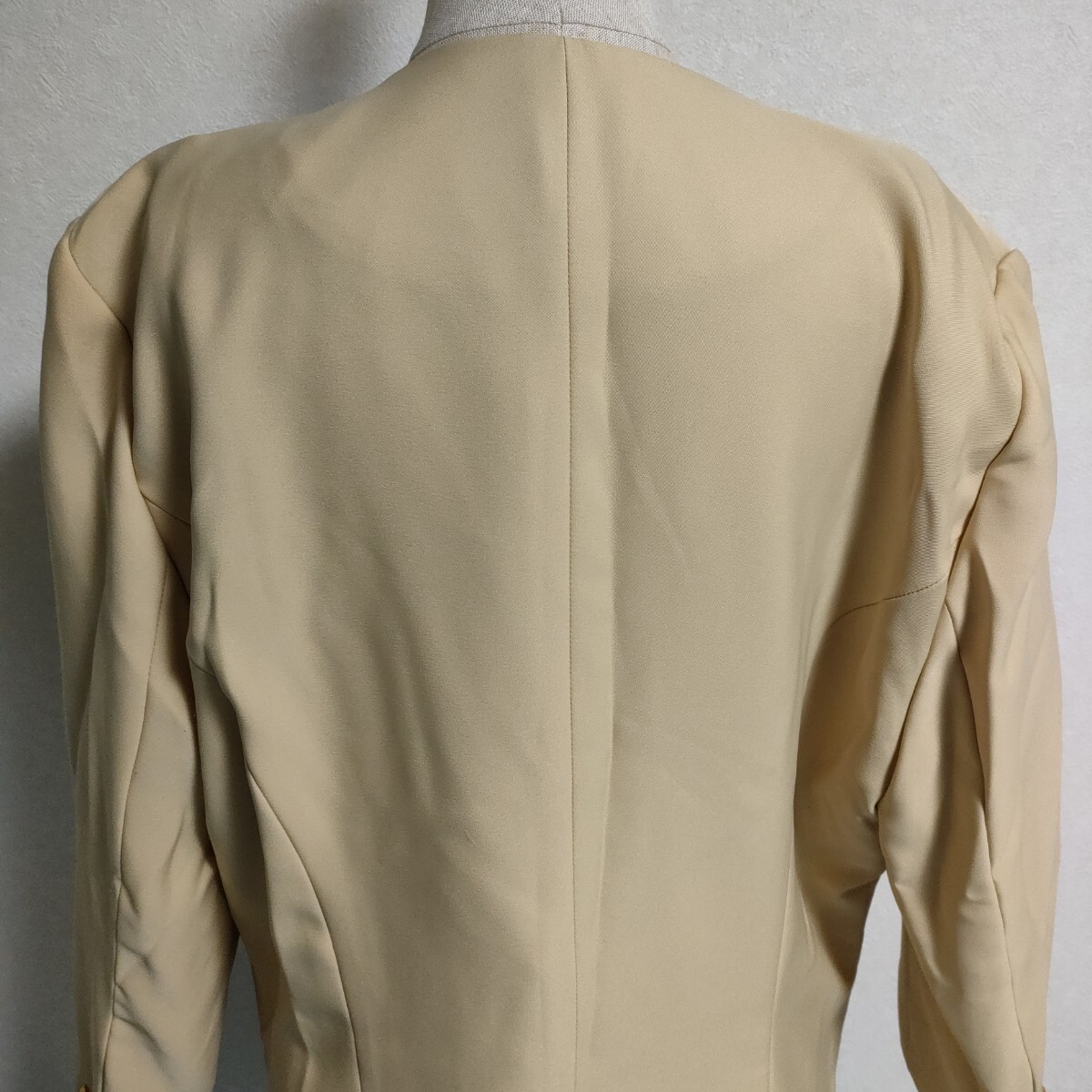 (フォロープレゼント実施中!4色ボールペン) ●2000円以上購入された方にはすてきなプレゼント!4色ボールペン 品名:ランクA ピエールバルマン(Pierre Balmain) レディーススーツセットアップ 色: 薄い黄色 サイズ 上着 平置:肩幅 約44cm: 身幅 約51cm:袖丈 約50cm :着丈約62cm サイズ スカート 平置 平置:ウエスト:約68cm ::着丈約 58cm (スカートにはゴム入っています。少し余裕があります。) ※素人の採寸ゆえに若干の誤差がございますのでご了承下さい。 生地: 上着・パンツ共に ポリエステル 100% 状態:全体的に目立った傷みはございません。全体的には良好なコンディションです。
