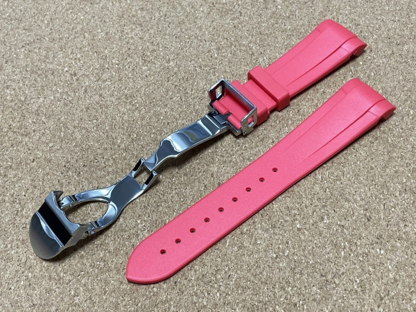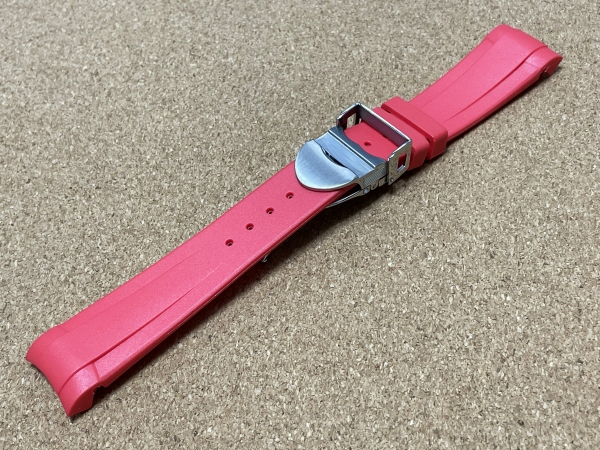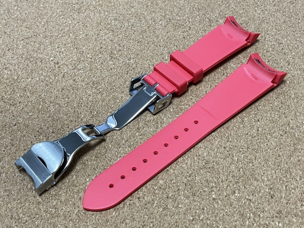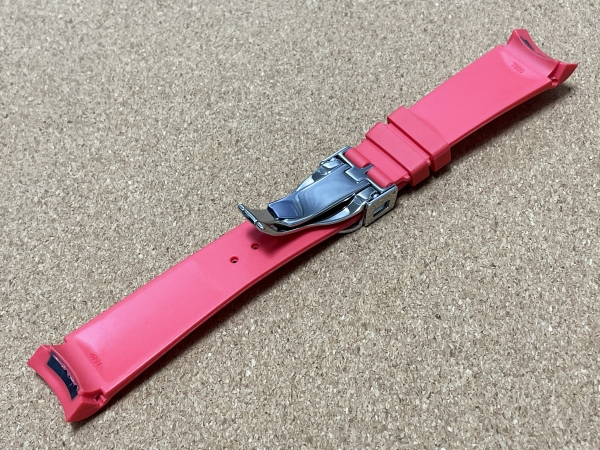 腕時計にアクセントを加える鮮やかなピンクレッドのカラーリングが、スポーティーで洗練された印象を演出します。