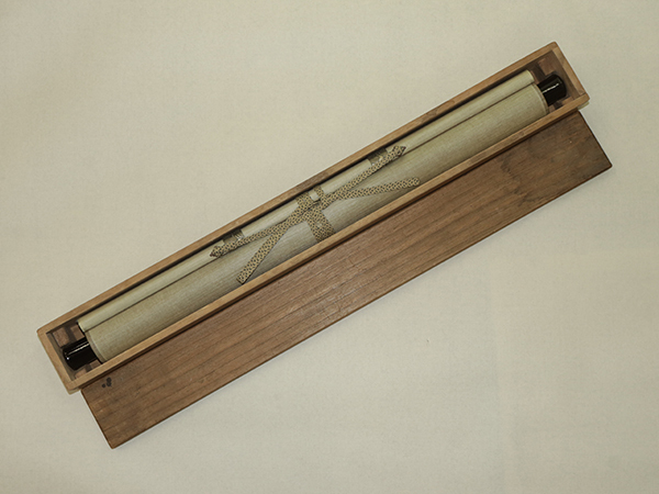 沢庵宗彭 たくわん-そうほう(1573-1645) 江戸前期の臨済宗の僧。沢庵は道号,諱は宗彭。 但馬国(兵庫県)出石の生れ。14歳のとき郷里出石の禅刹宗鏡寺に入って希先西堂, ついで大徳寺派の重鎮だった董甫宗仲に師事した。 この宗仲との結びつきが,権勢に密着した五山禅ではなく,反骨と在野の禅, それに只管弁道を伝統とする大徳寺派の禅僧として,沢庵がその生涯を送る機縁となった。 本紙は、染み、破れ痕があります。 表装は、軸先に小さな傷がありますが、改装済みの為きれいです。 【サイズ】 作品 横約39cm×縦約96cm 表装 横約55cm×縦約183cm |