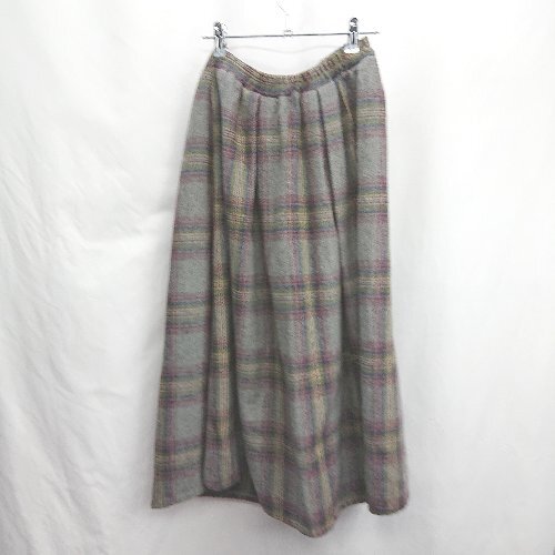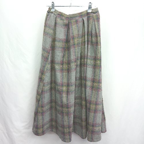 ◇ ⊇ MERLOT メルロー ウール混合 チェック柄 ロング ギャザー スカート サイズF グレー系 レディース E