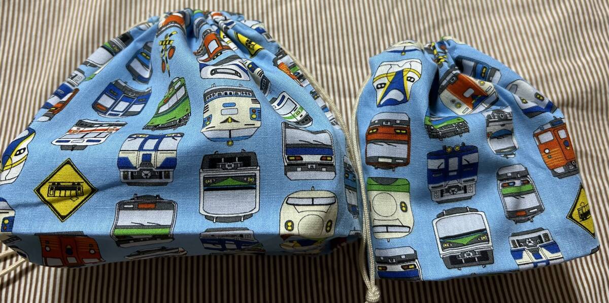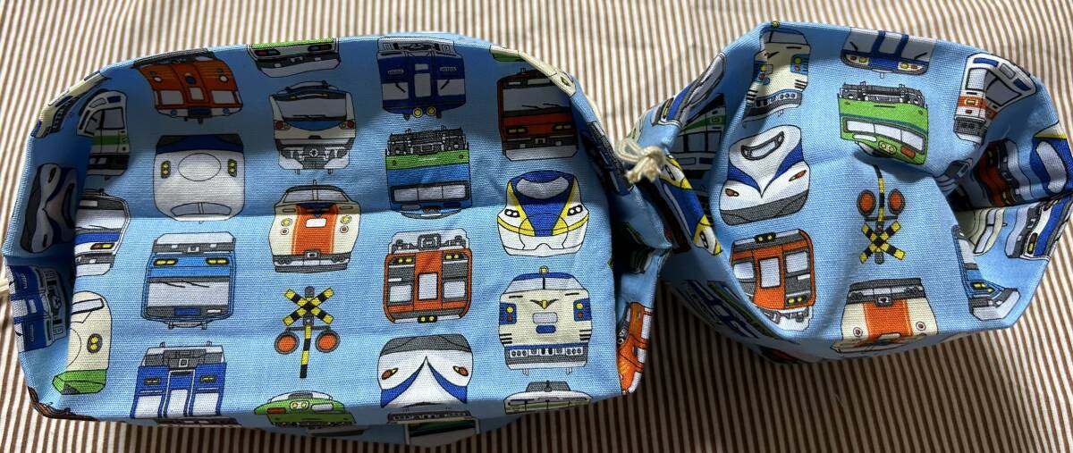 お弁当袋コップ袋ハンドメイド水色電車新幹線入園準備