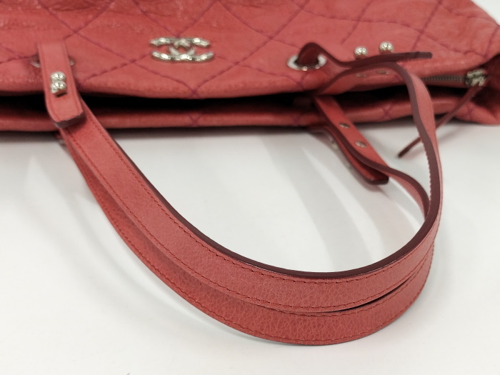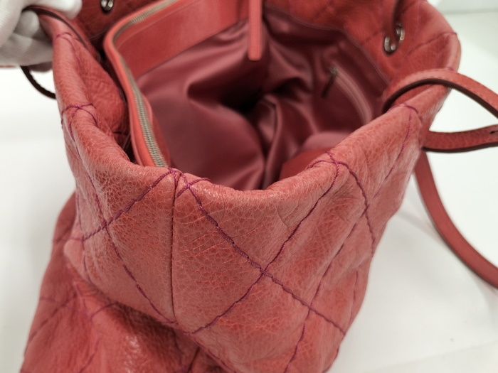 | ◆商品情報 | ・カラー:ピンク ・素材/ライン:レザー ・サイズ:最大約 W42×H26×D13(cm) ・ショルダーの長さ:最大約51(cm) ※多少の誤差はご了承下さい。 外側 :収納部×2ヶ所 内側 :オープンポケット×2 :ファスナーポケット×2 :カード入れ×1 |