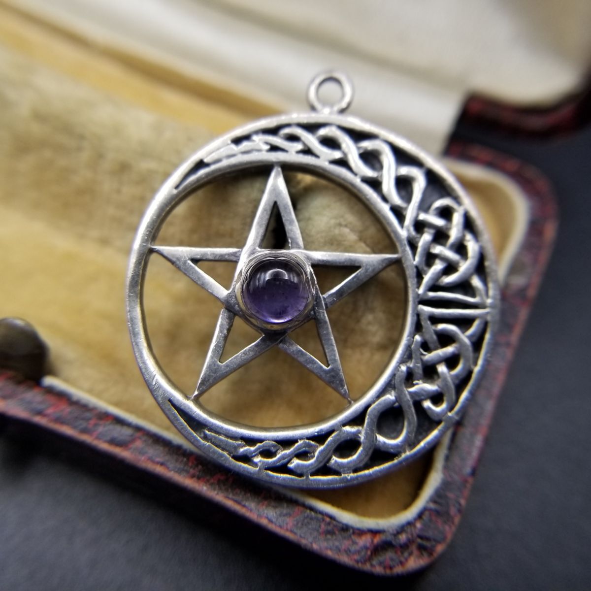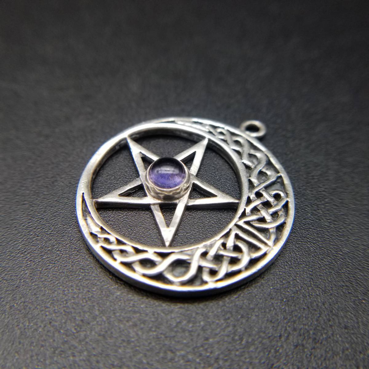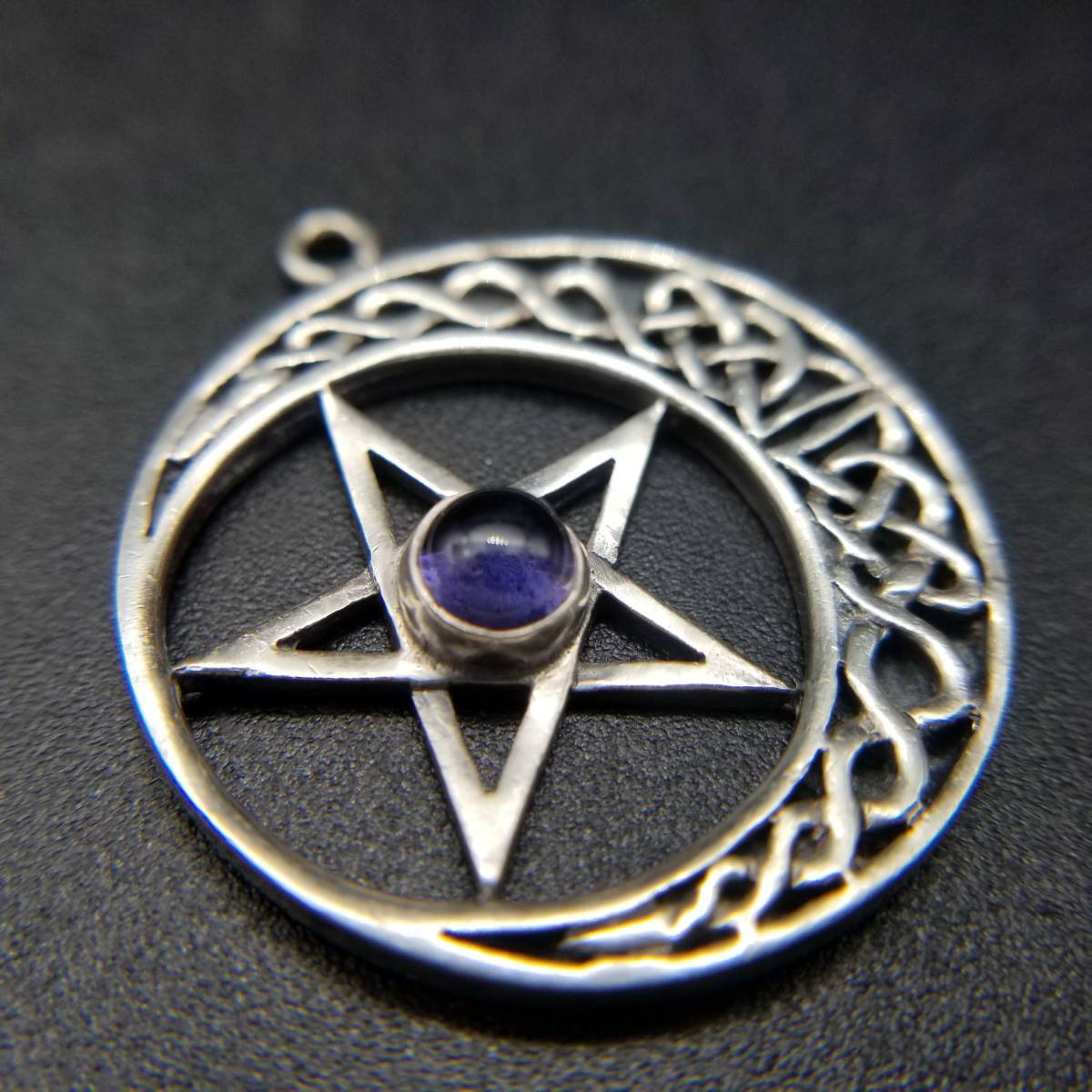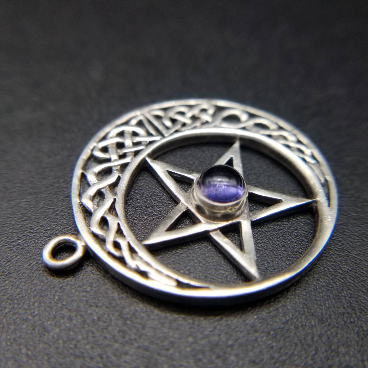 Peter Stone PSCL セルティックノット 星 925 シルバー ヴィンテージ チャーム 銀 ペンダントヘッド 紫ガラス カボション Star Celtic YMT