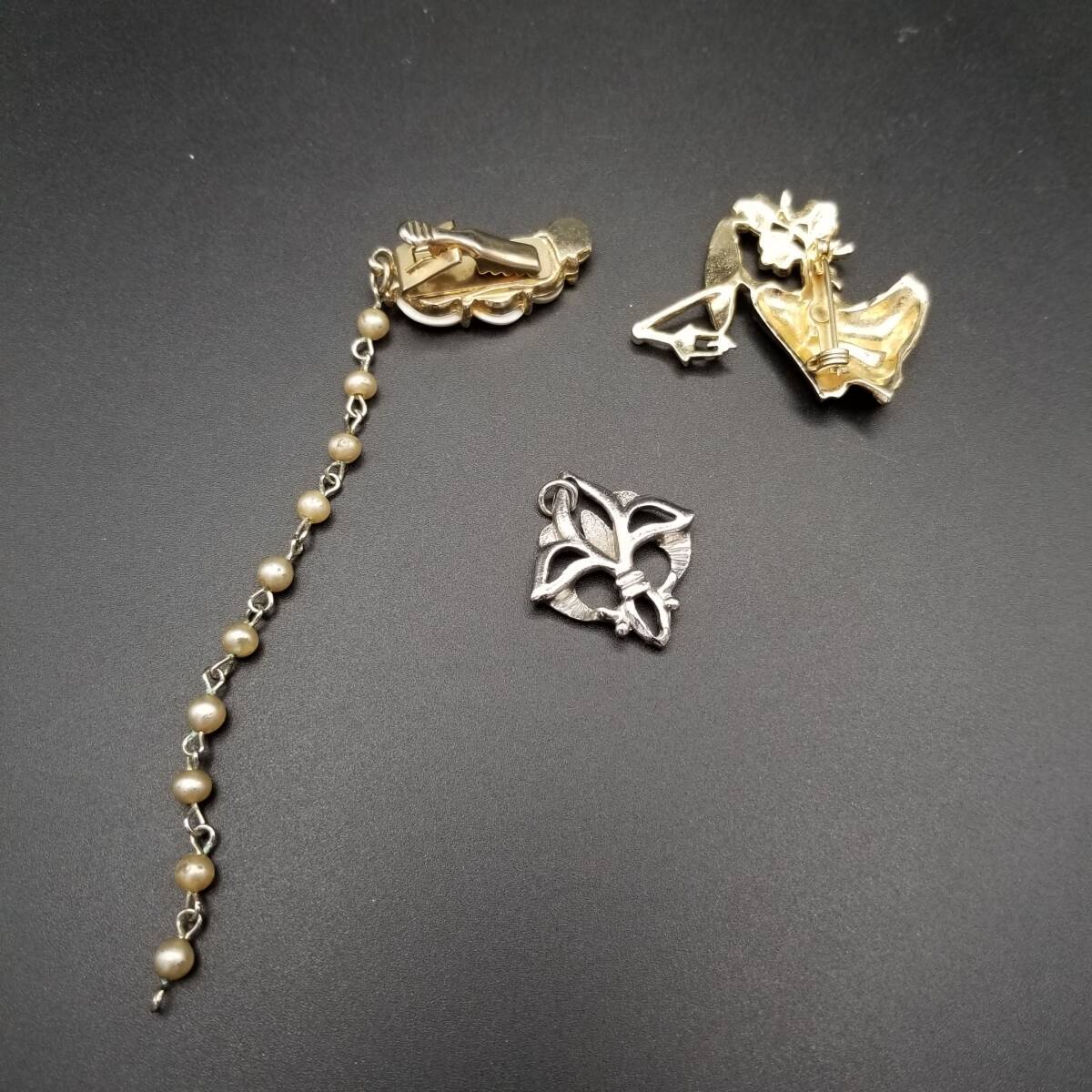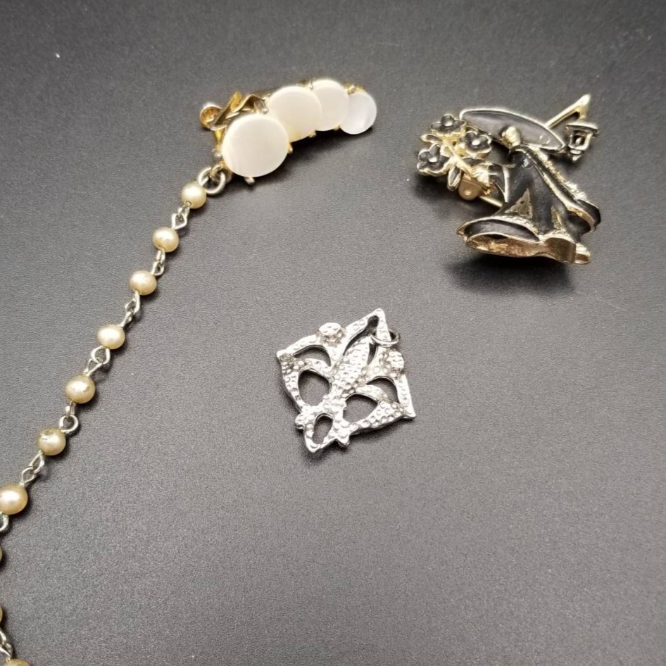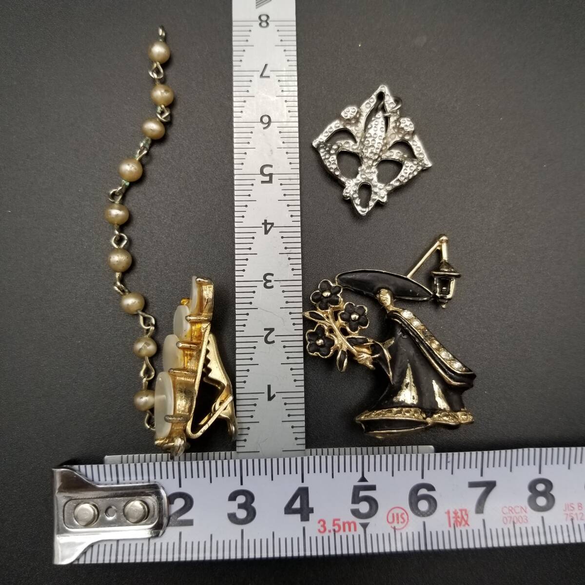 魔女 フルールドリス パールチェーン ヴィンテージ レトロ ブローチ クリップ ジャンクセット パーツ取り Y20-F