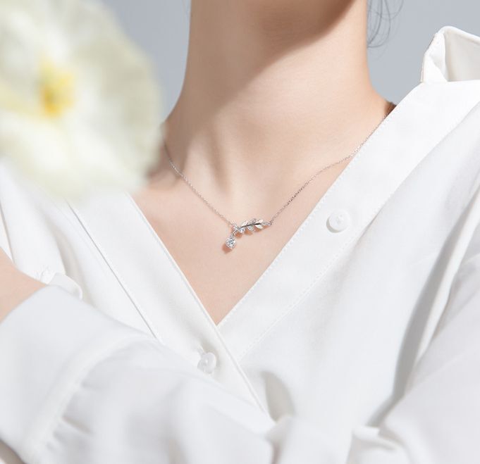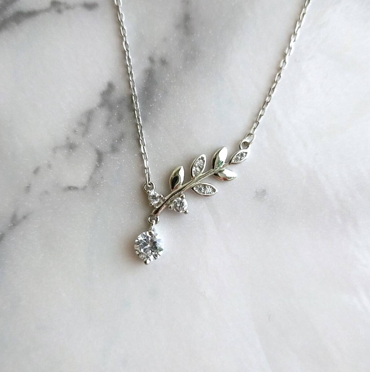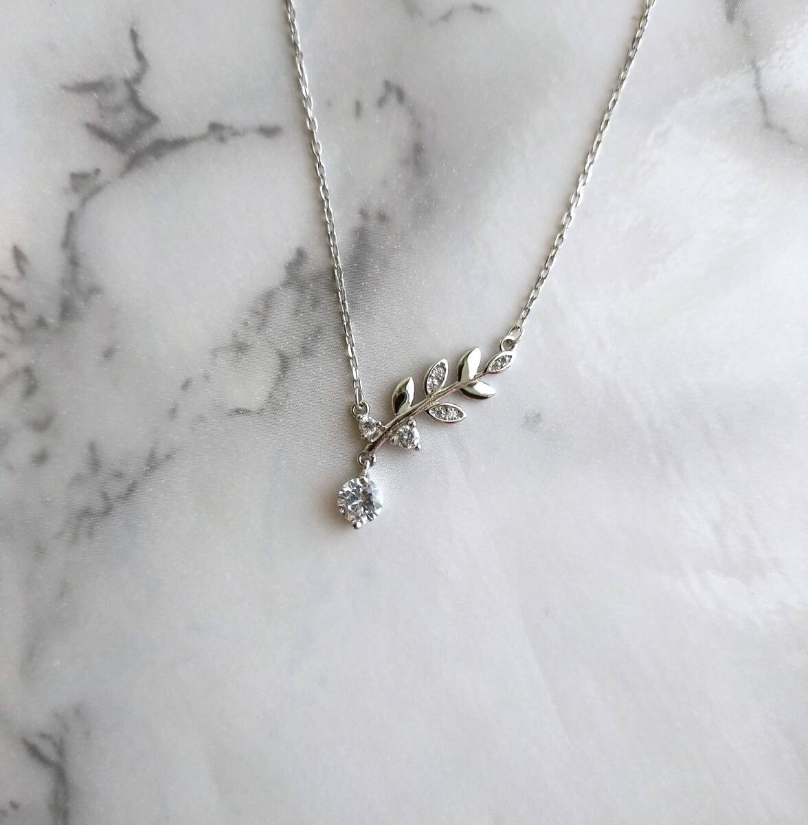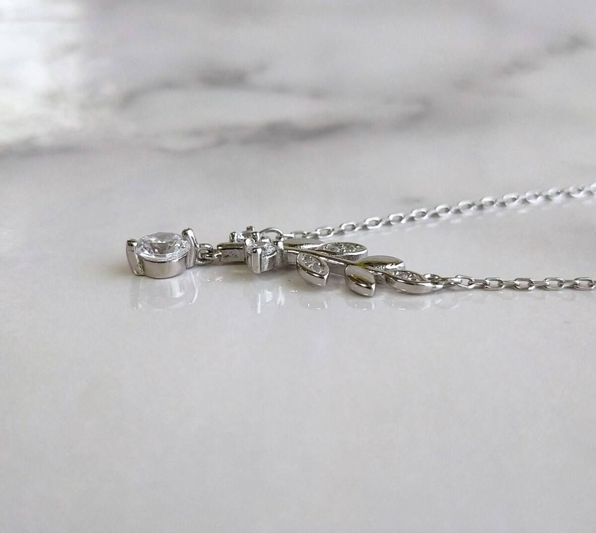 リーフ ネックレス シルバー925 ペンダント CZジルコニア 銀 オリーブ 葉っぱ