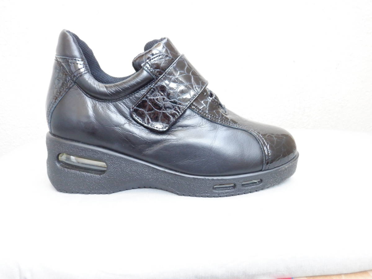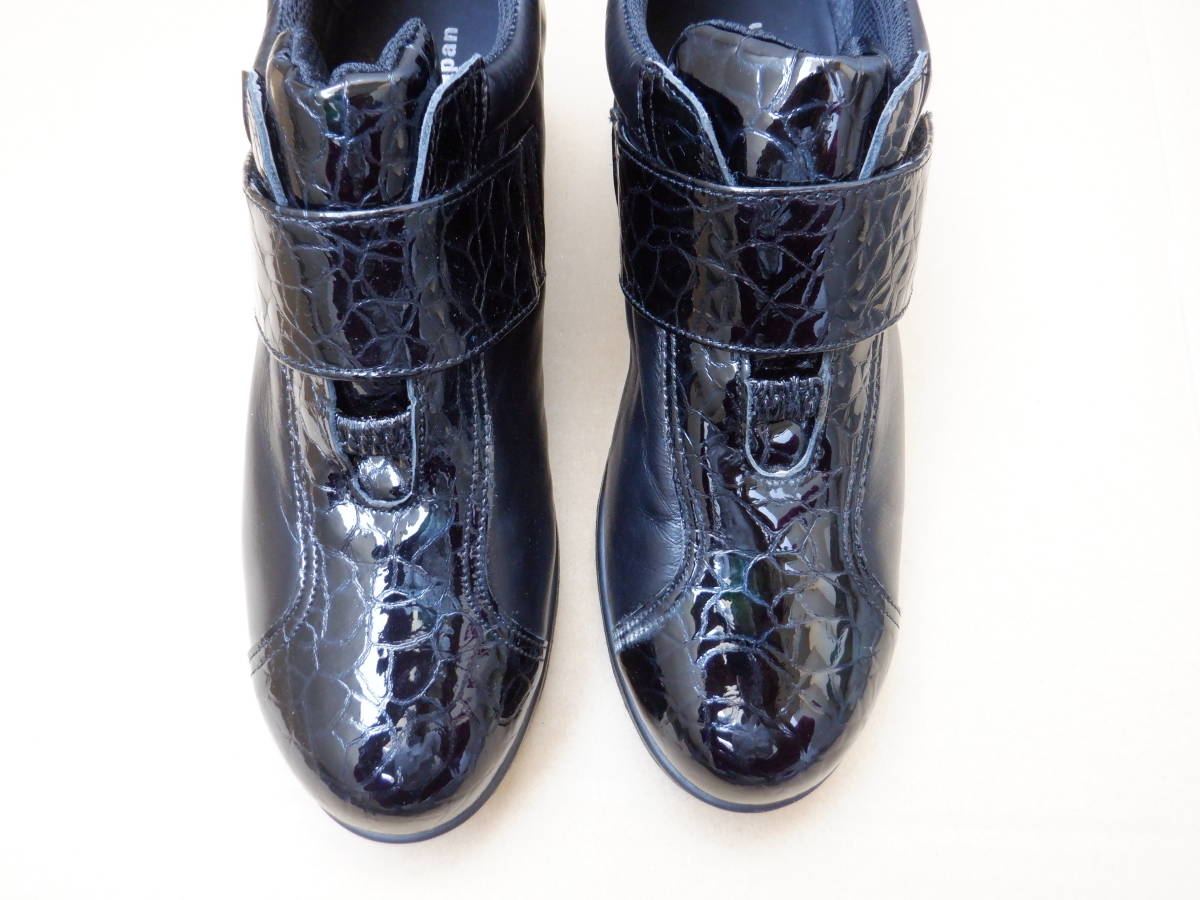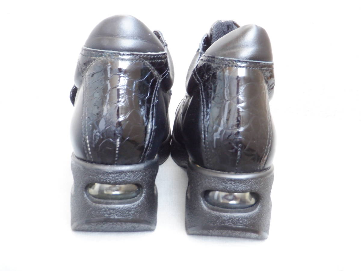 合皮製で色は黒です。  エナメルコーテイングされています。