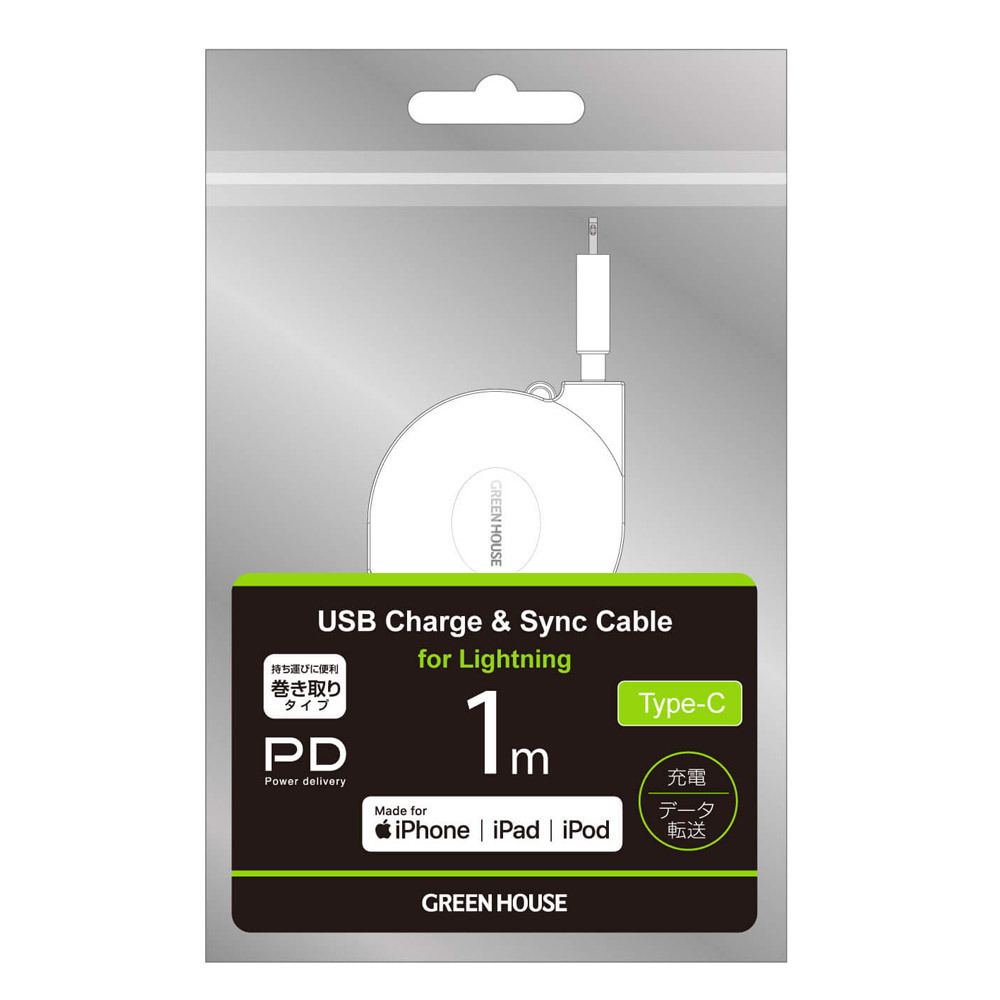 USB Type-C to Lightning 巻き取り式 データ転送ケーブル