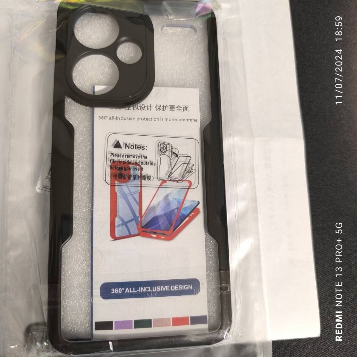 黒色 Redmi Note 13 pro+ 5g TPU+PC素材を組み合わせた360度完全保護電話ケース 耐衝撃性と耐傷性ケース