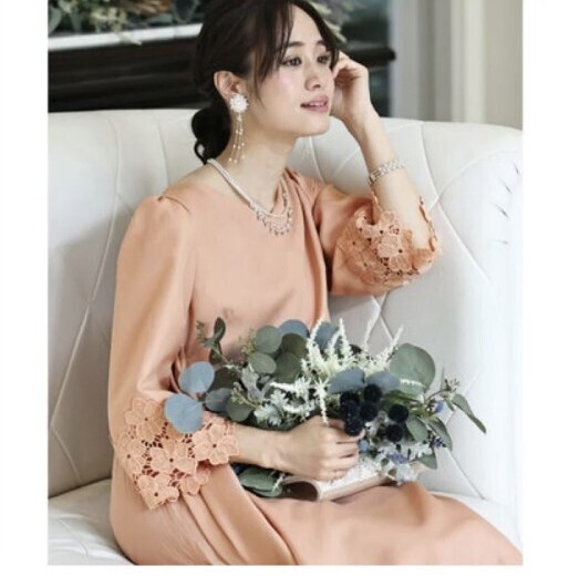 袖のお花部分が華やかさを演出し、結婚式のお呼ばれ、入学式、パーティーなど様々な場面で楽しむことができます。