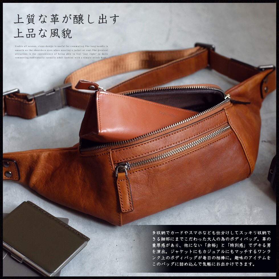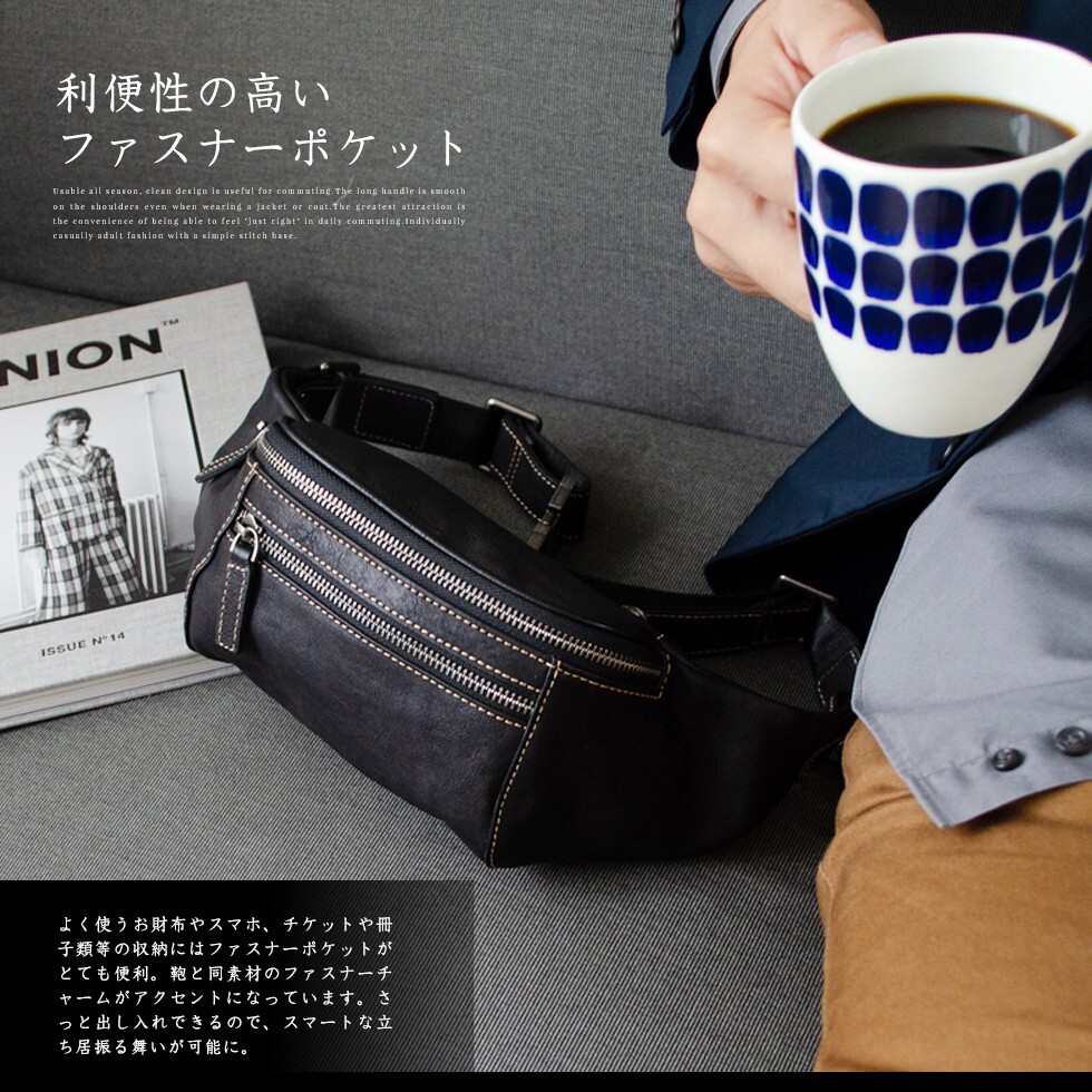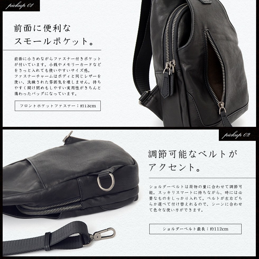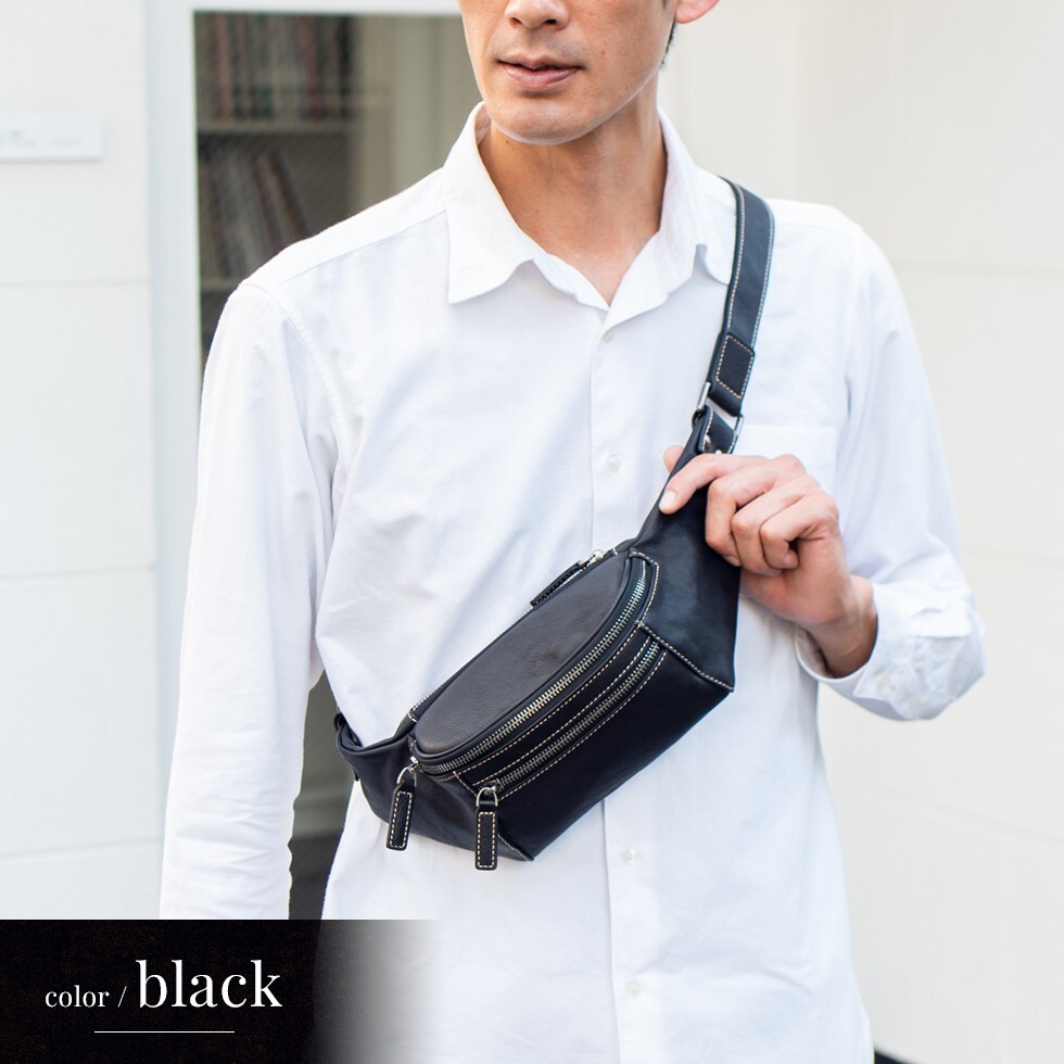 【イタリア牛革(スプリットレザー)】ボディバッグ・イタリアレザー 高い実用性 シンプルデザイン ブラック | |