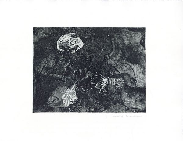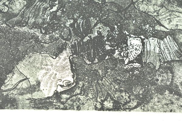 池田満寿夫版画「化石の中の花嫁たち」 銅版画 限15 サイン レゾネNo.42 15×20 S:25×32.8 1957 Masuo Ikeda