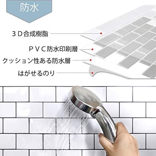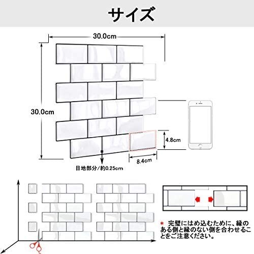 ☆彡本物っぽくリアル。片手で持ちやすく、貼りやすく30.0cm X 30.0cm/枚 (5/10枚セット)。タイル部分の厚さ:2.5mm。分厚い3Dタイルシートは薄めシールより本物のタイルのように見えます。少し凹凸のある壁面に貼り付けても、平らなままでいられます。シワが出ることを防ぐに効果的です。
