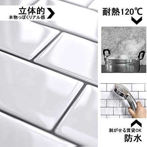 ☆彡防水/耐熱120℃。全体には紙不使用で水はねに強い。洗面所、キッチン、トイレ、風呂場などの壁に長くしっかりと貼り付けることができます。耐熱性の優れた生地で、浴室もコンロ周りも安全に利用できます。(耐火素材ではないため火気や熱い鍋から15cm以上離してください。また、冷熱の交替により、のりと壁面の間に凝結した水滴が現れやすく、のりの付着力を弱めます。浴槽の外壁にはを勧めません。)