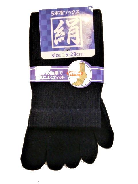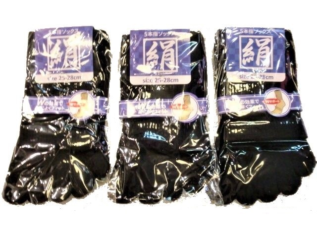 メンズ ファッション小物 靴下 5本指(絹シルク混かかと無し)5本指ソックス サービス品!!濃紺 【3足セット】