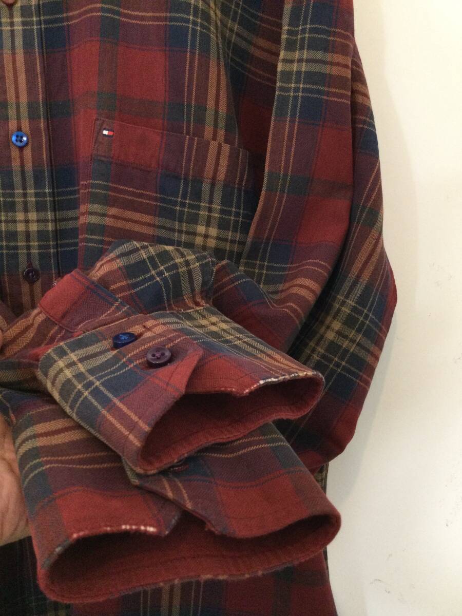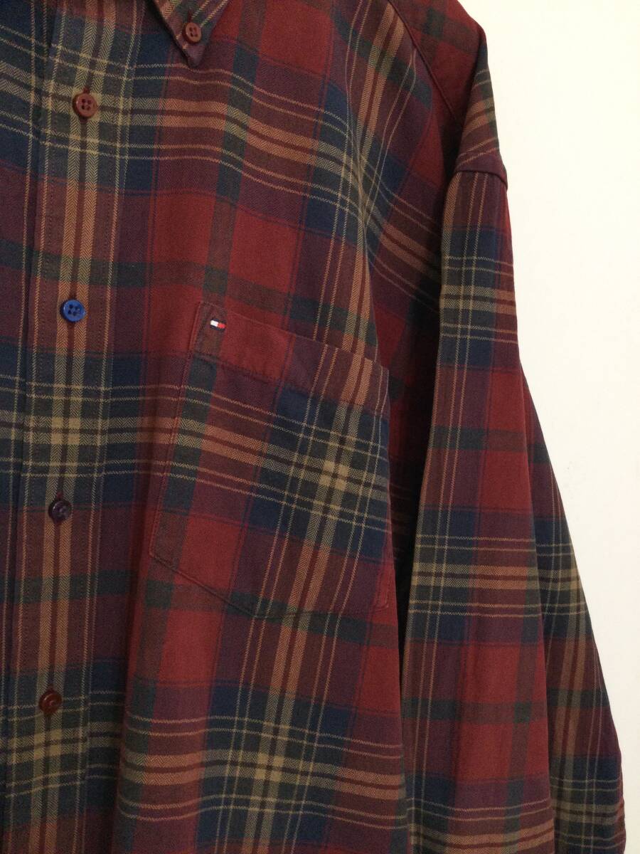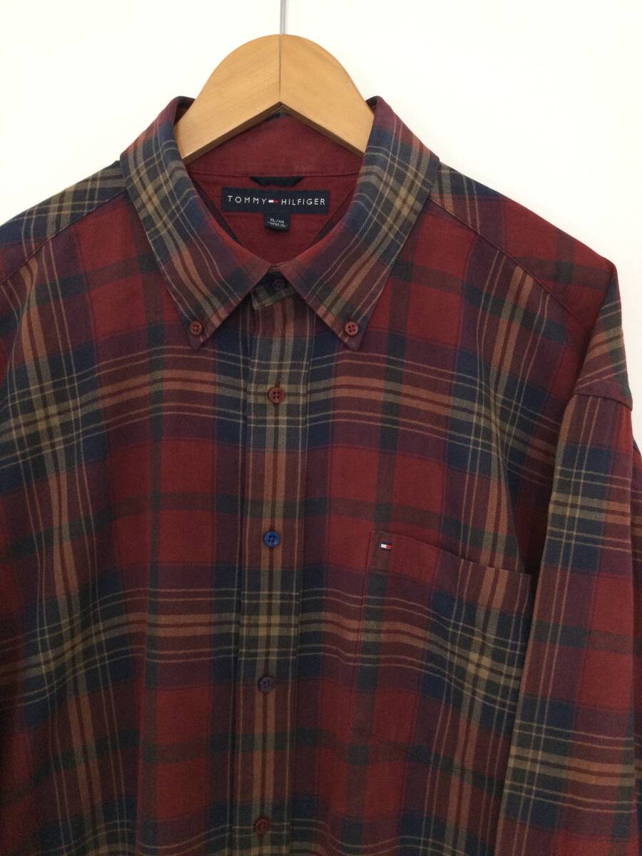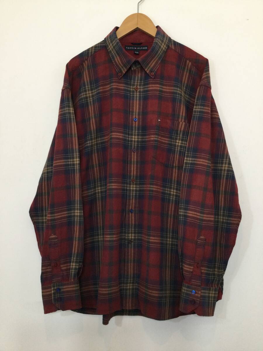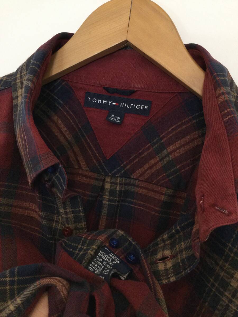 TOMMY HILFIGER トミーヒルフィガー フランネルシャツ コットン長袖シャツ チェックシャツ 胸ロゴ メンズXL 大きめ 良品綺麗