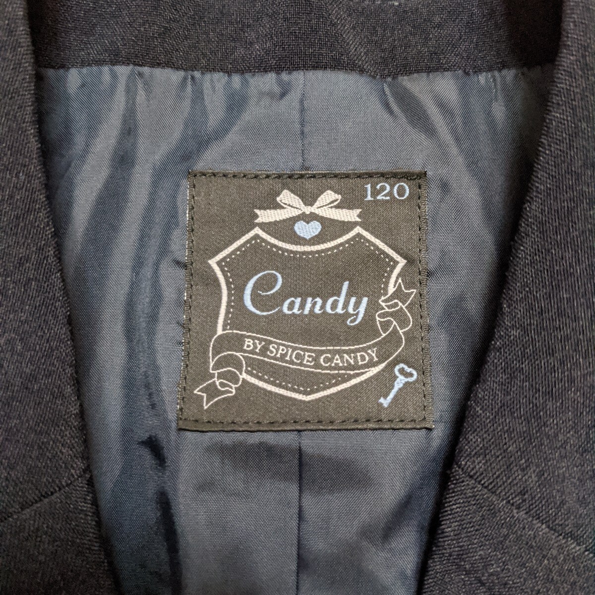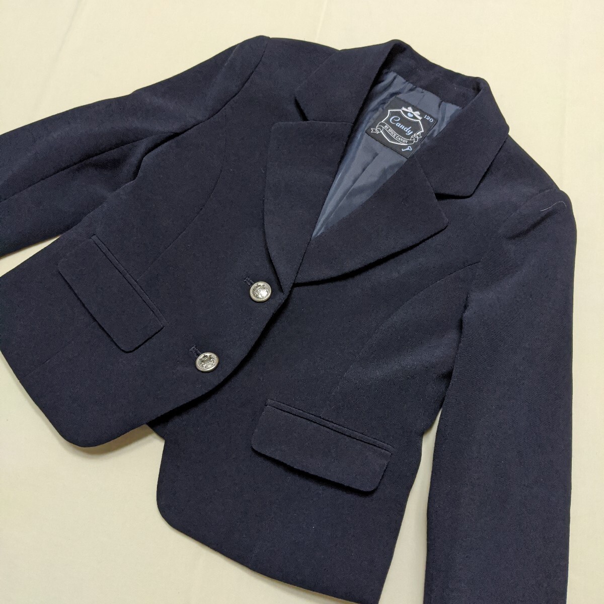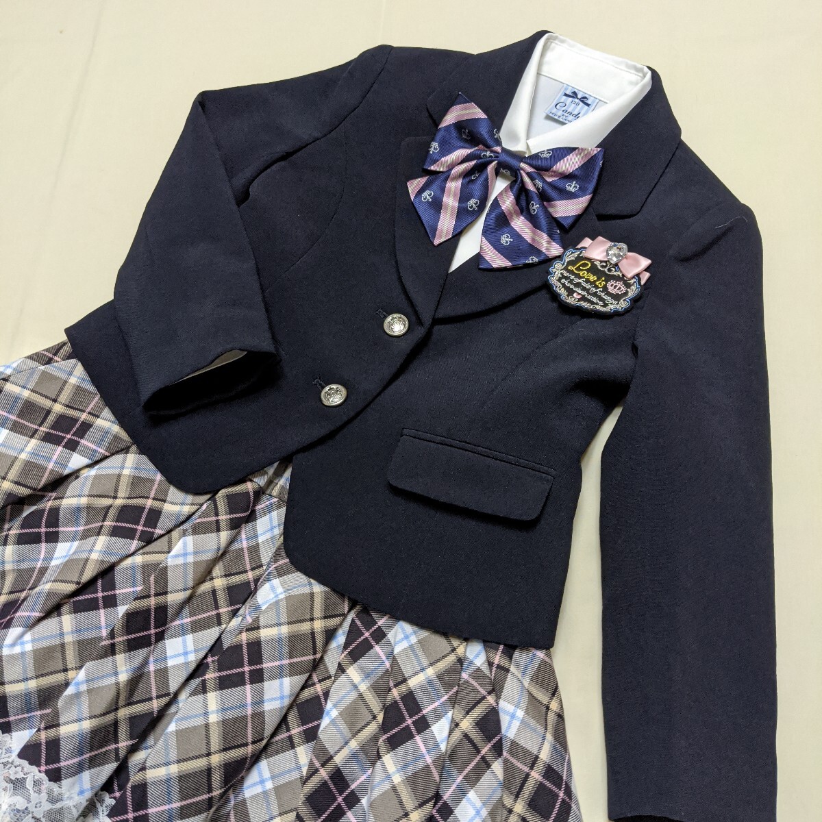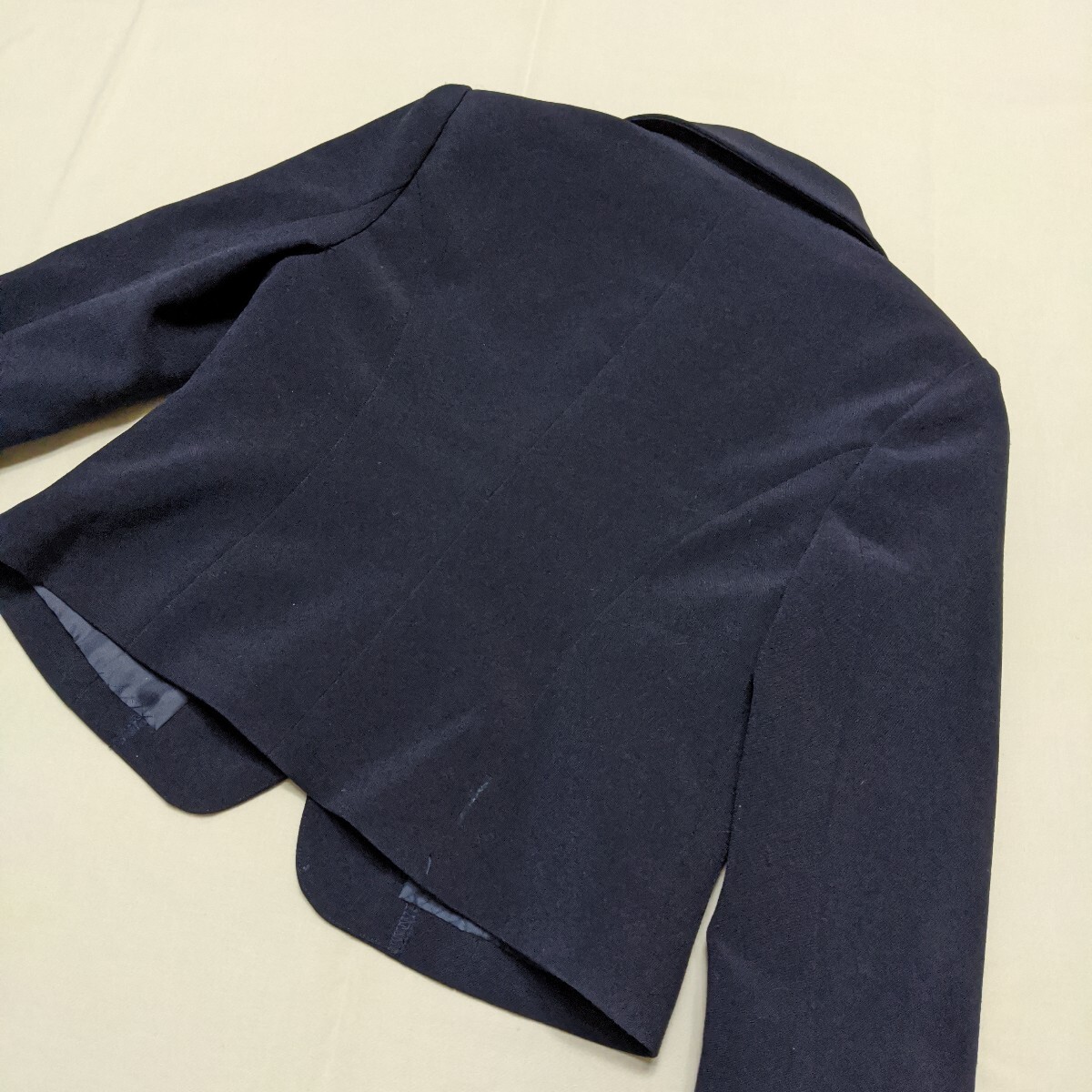 紺のジャケットにブラウン系のスカートを合わせたセレモニースーツです。